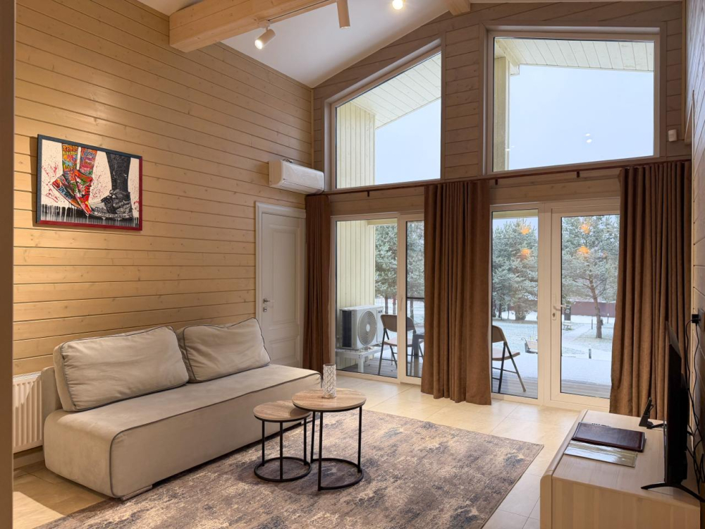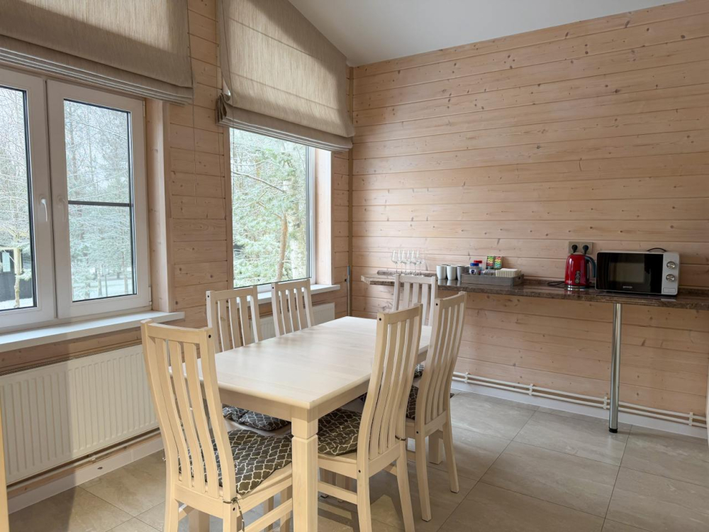 - 6 номеров по 25 кв.м с панорамными окнами и видом на лес