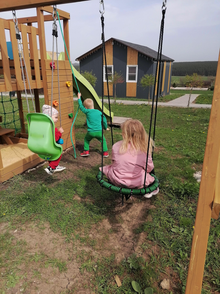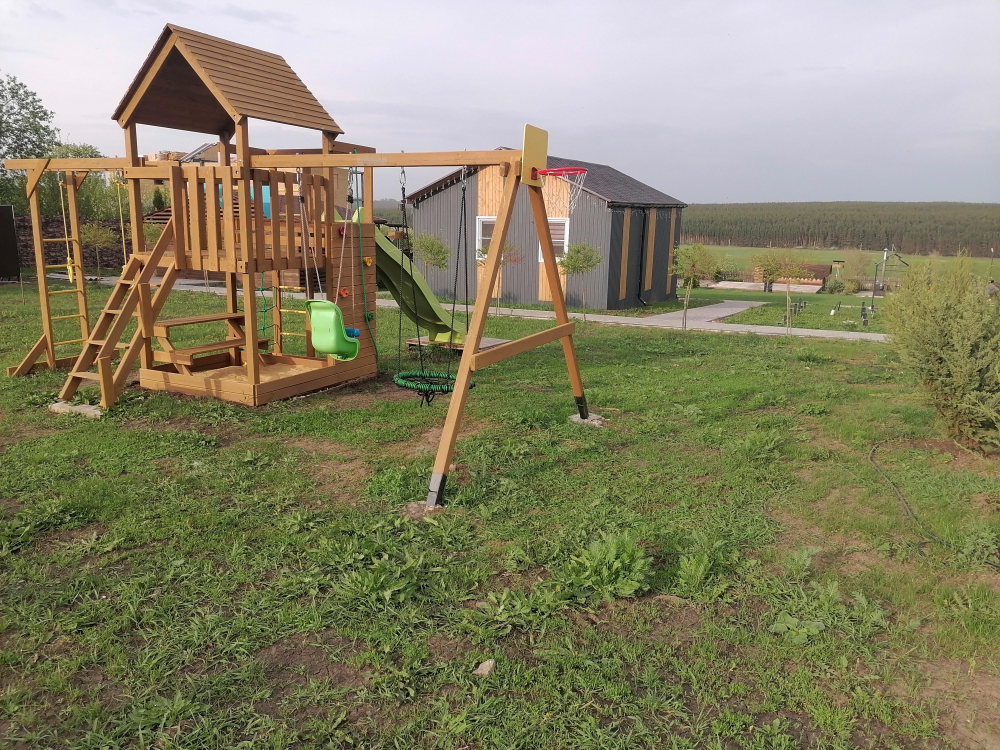 - В наличии всё для активного отдыха: горки, качели, песочница, турник