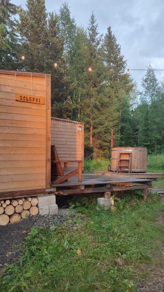 В стоимость входит растопка купели и запас дров - мы не ограничиваем использование купели по времени. Наслаждайтесь ею столько, сколько захотите. Горячая купель из натурального дерева под сенью вековых елей. Прекрасно расслабляет после активного дня и дарит новые впечатления.