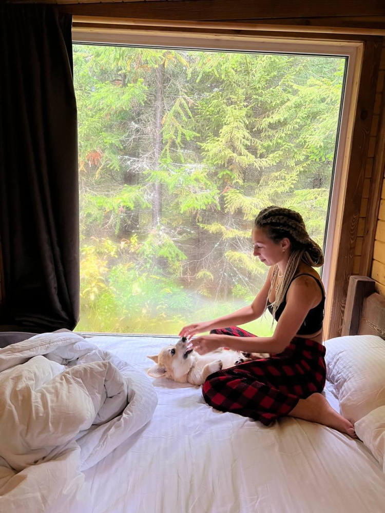 К нам можно приехать с небольшими собачками! Специально для этого подготовлены некоторые домик Манжерок, который оснащен мисками и лежанками. Плед и коврик сделаны из более прочных материалов, которые выдержат встречу с лапами вашего питомца! Единовременная доплата за собаку 1000 рублей