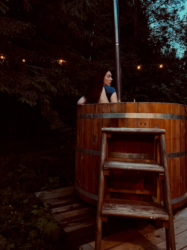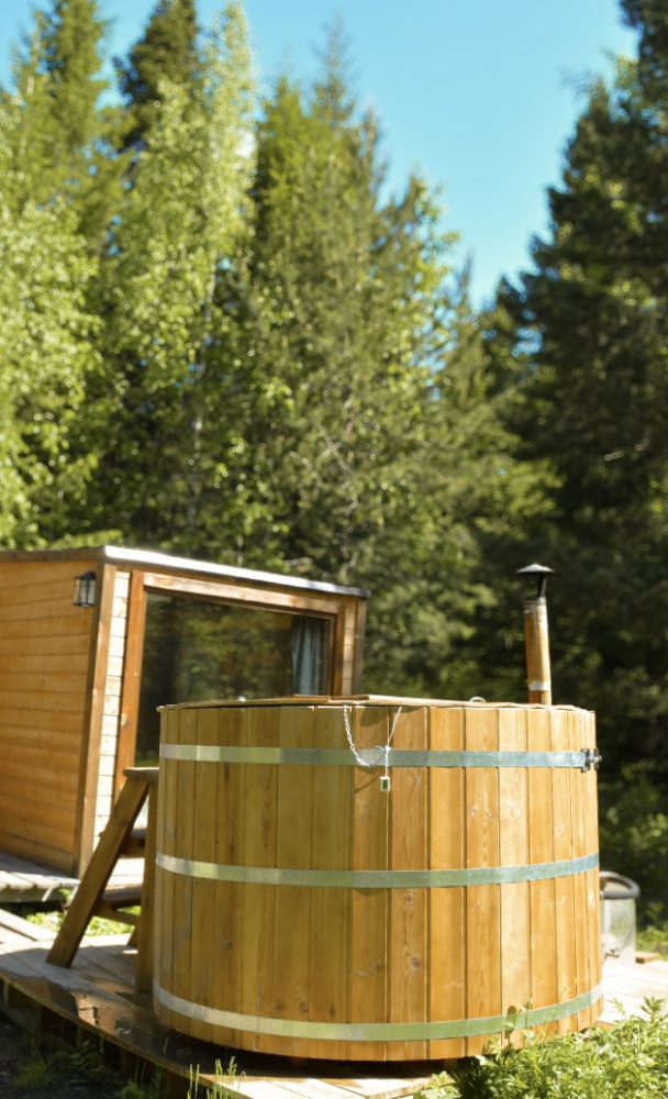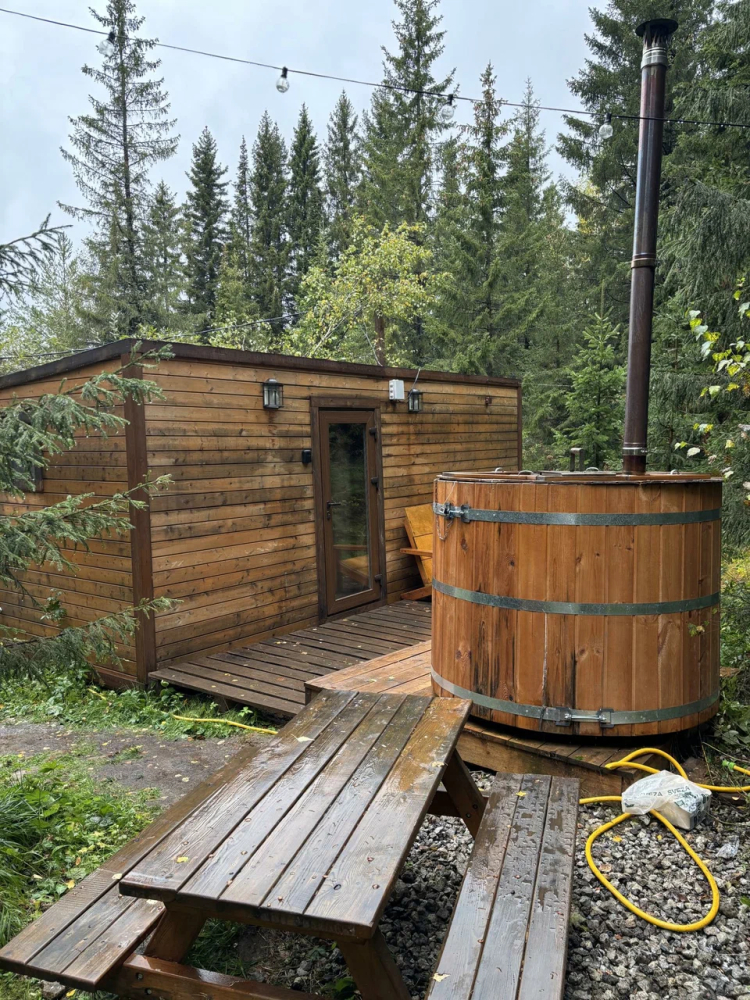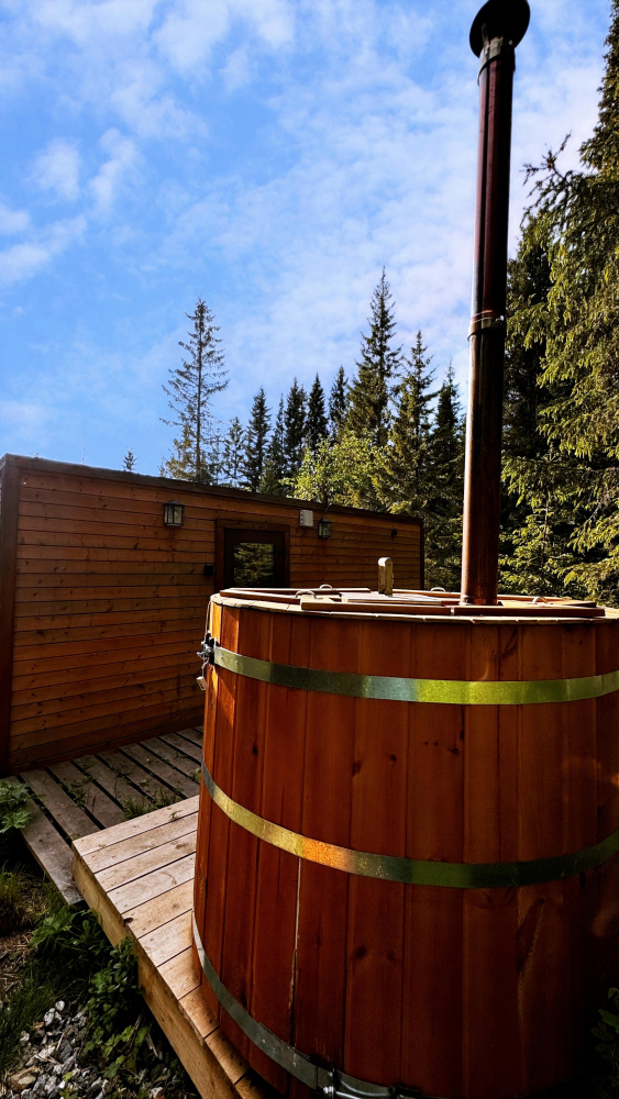 - Релакс: Нежьтесь в деревянной купели на дровах, снимая стресс и усталость