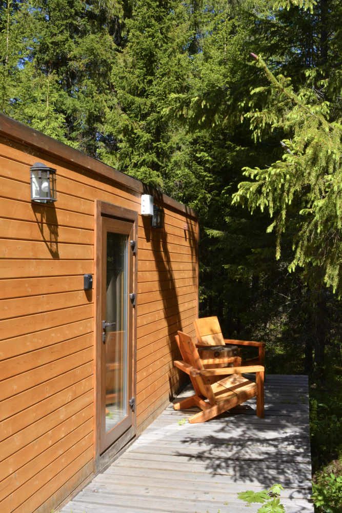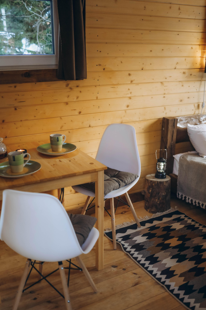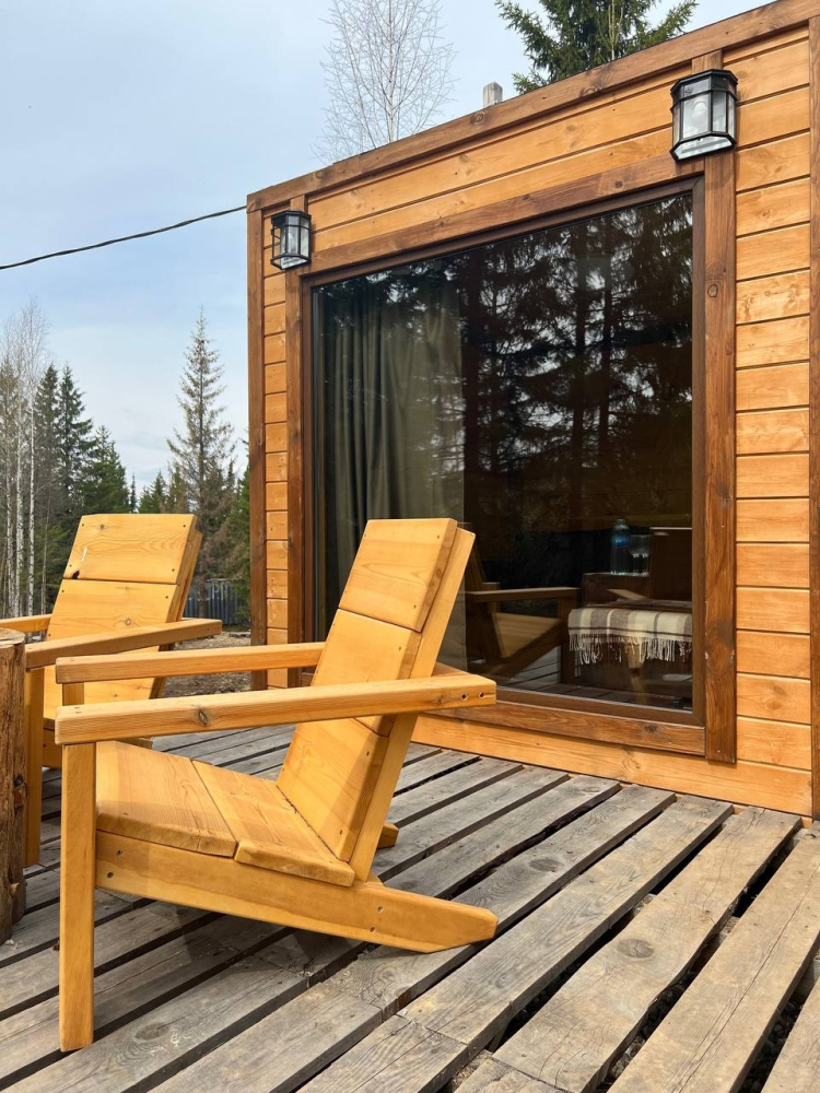Домики рассчитаны на двоих и выполнен в экодизайне из натурального дерева.