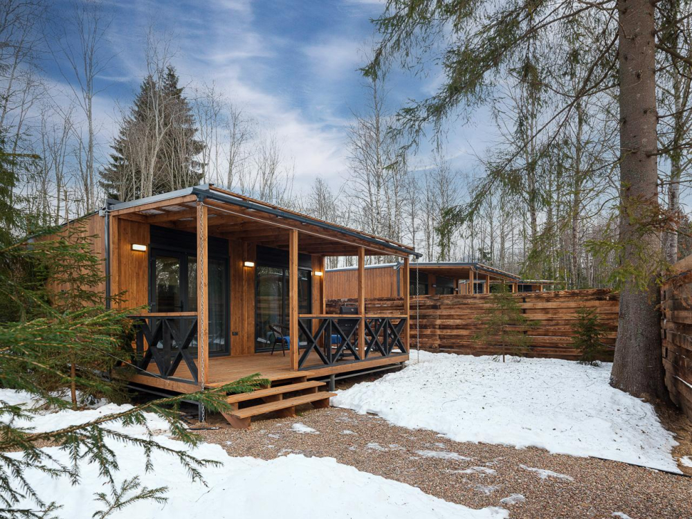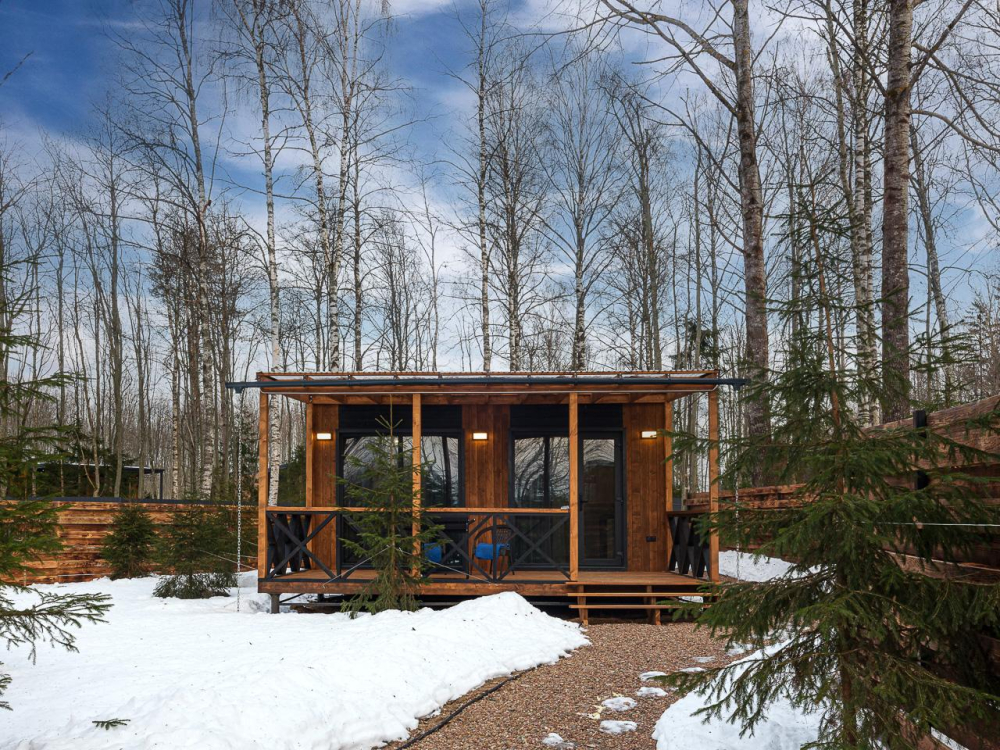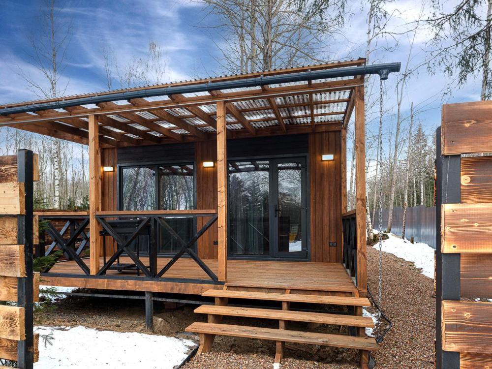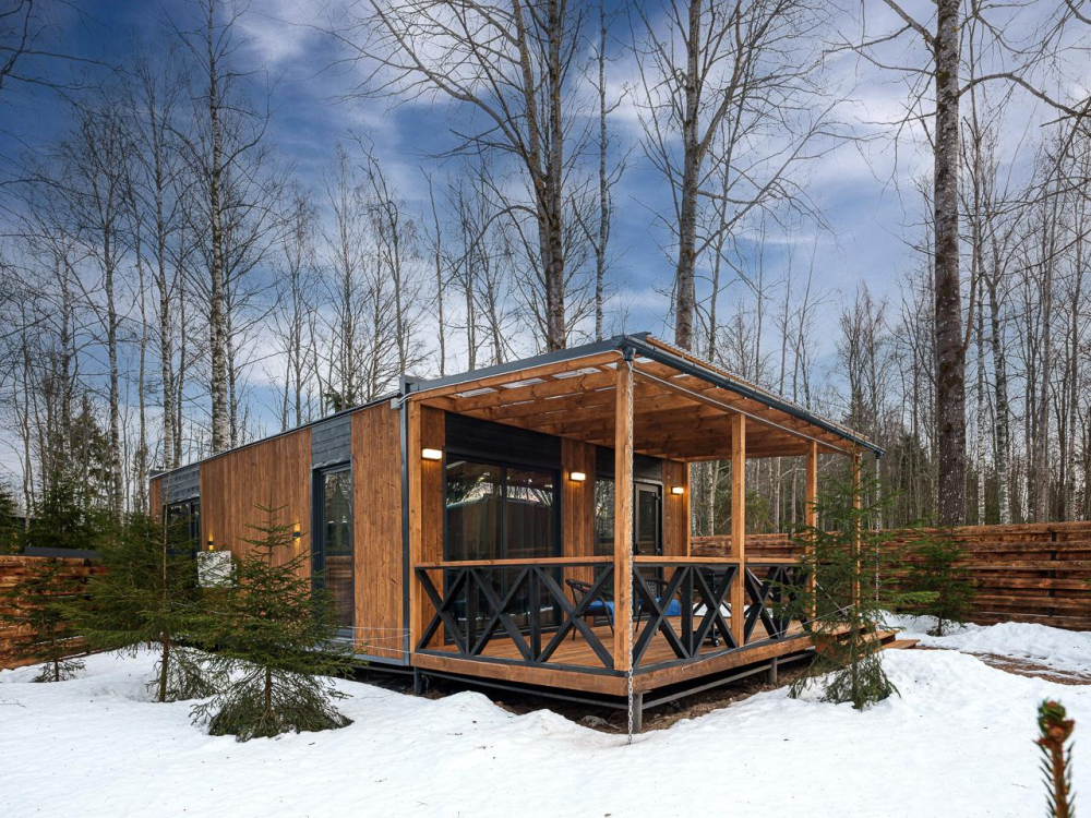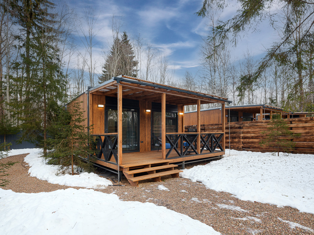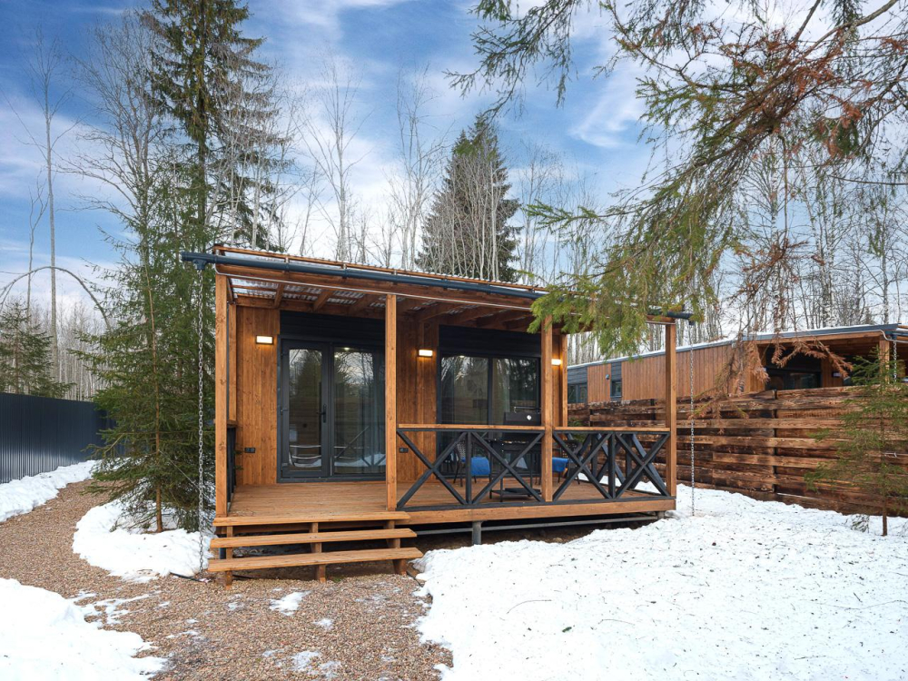 - Уютные дома площадью 70 кв.м с панорамными окнами и видом на природу.