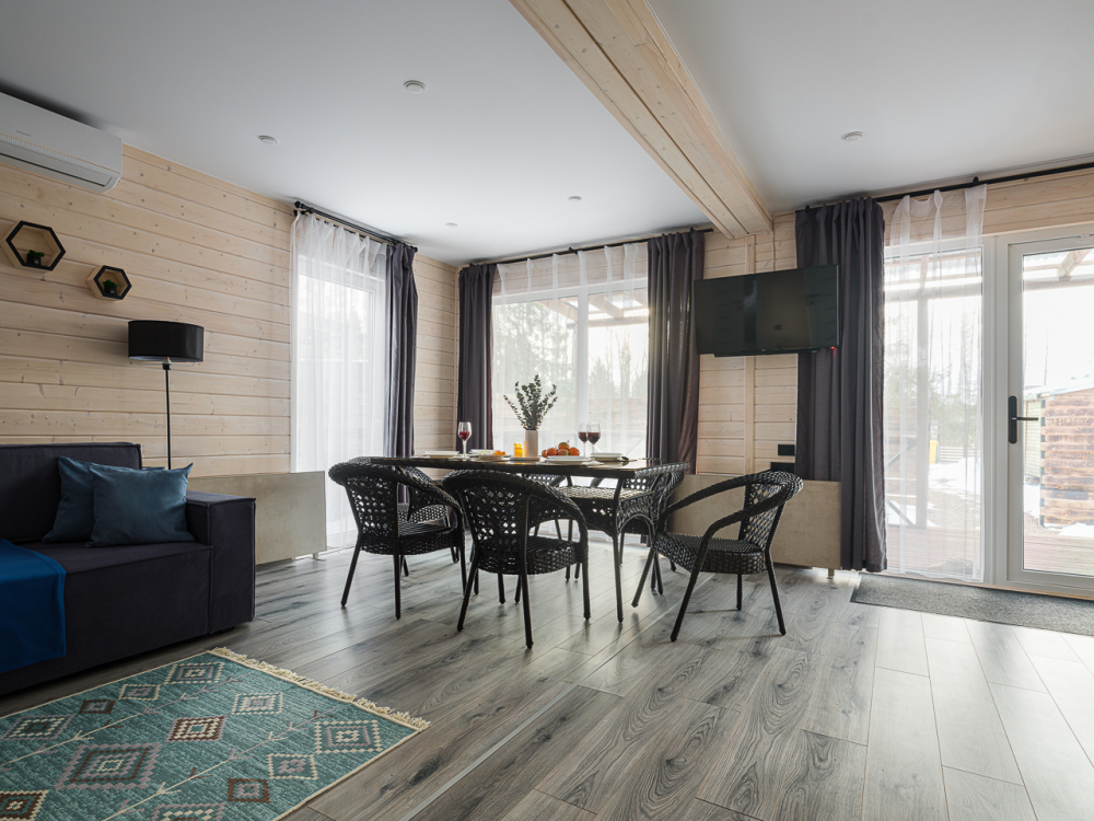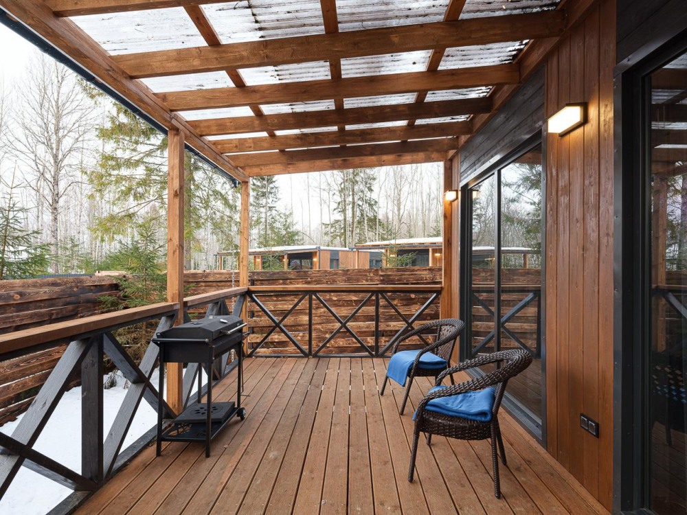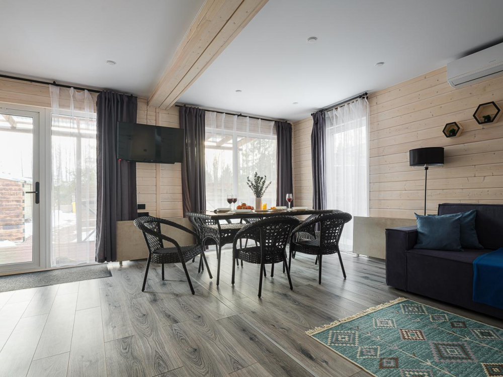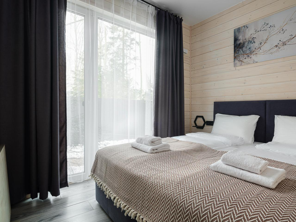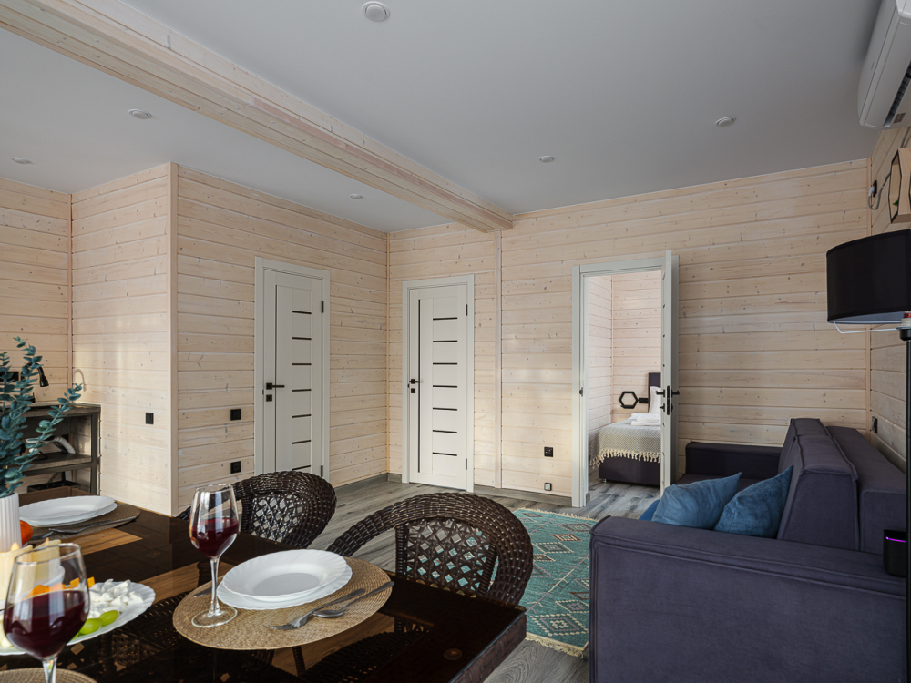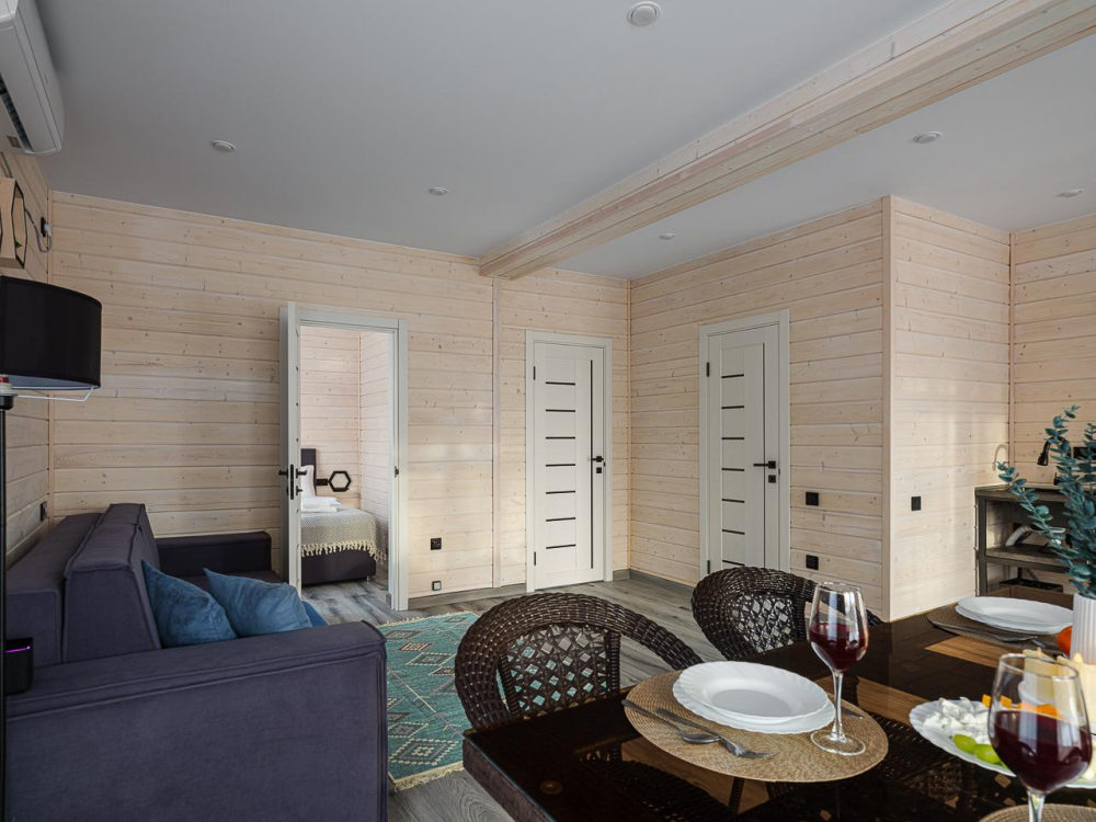 - Уютные дома площадью 70 кв.м с панорамными окнами и видом на природу.