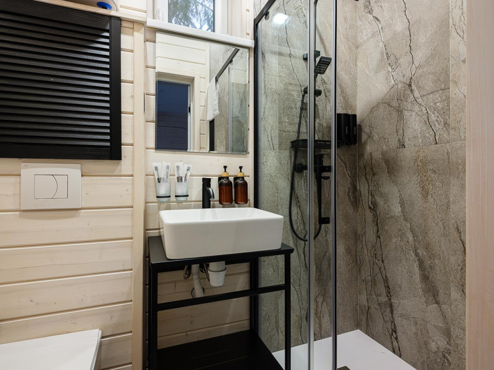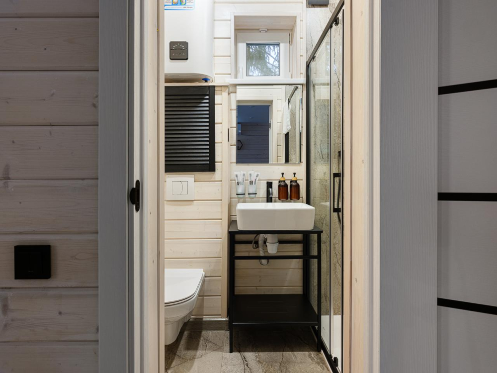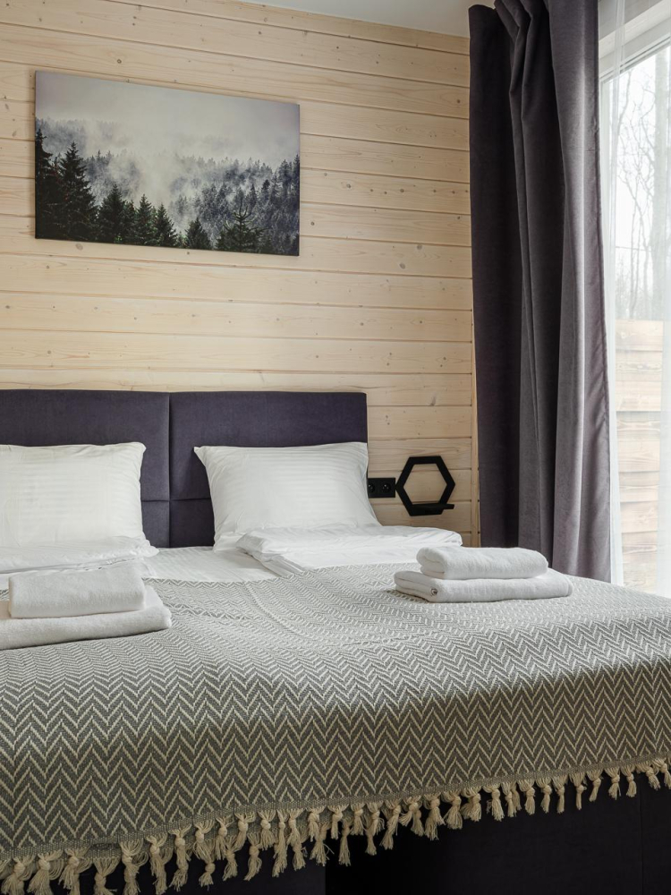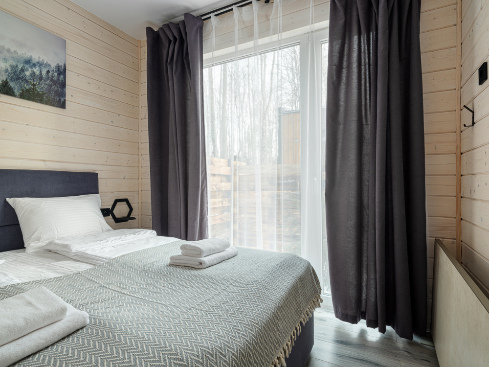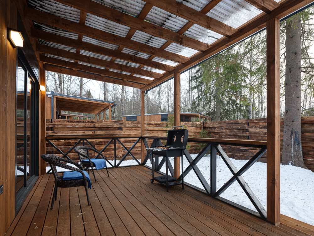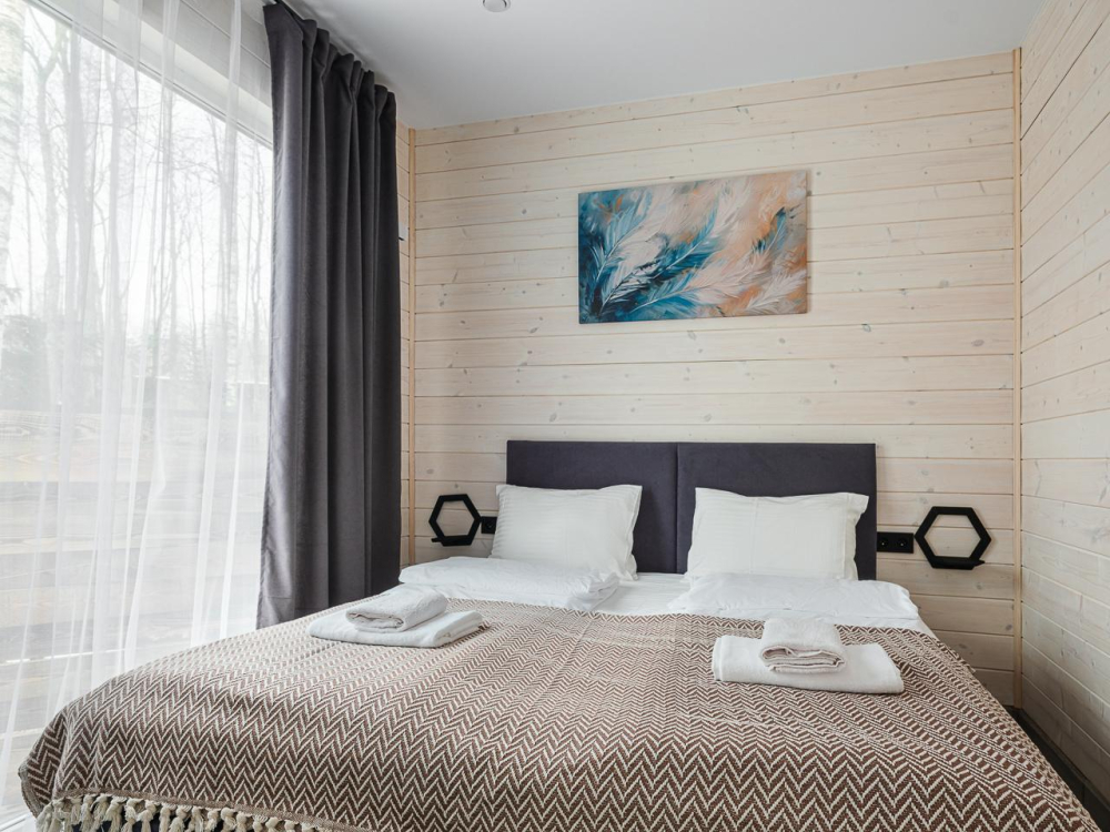 - Уютные дома площадью 70 кв.м с панорамными окнами и видом на природу.
