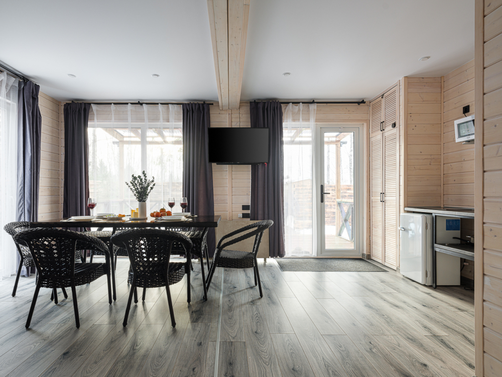 Каждый дом рассчитан на комфортное размещение до 6 гостей: