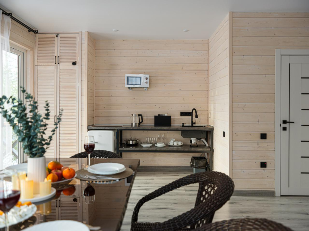 - Дровяная баня: Традиционная парная с ароматными вениками (стоимость уточняйте при бронировании).