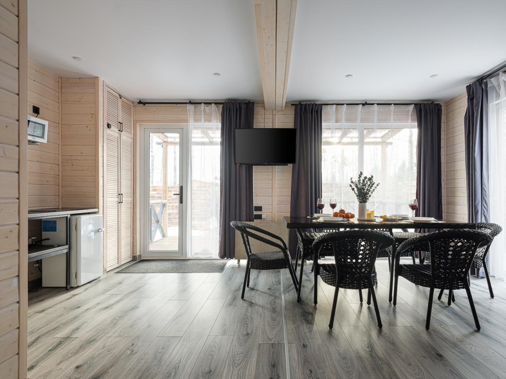 - Всего 5 минут езды до курорта «Игора» с горнолыжными склонами, зиплайном, ресторанами, спа-программами, ледовым дворцом и детскими клубами.