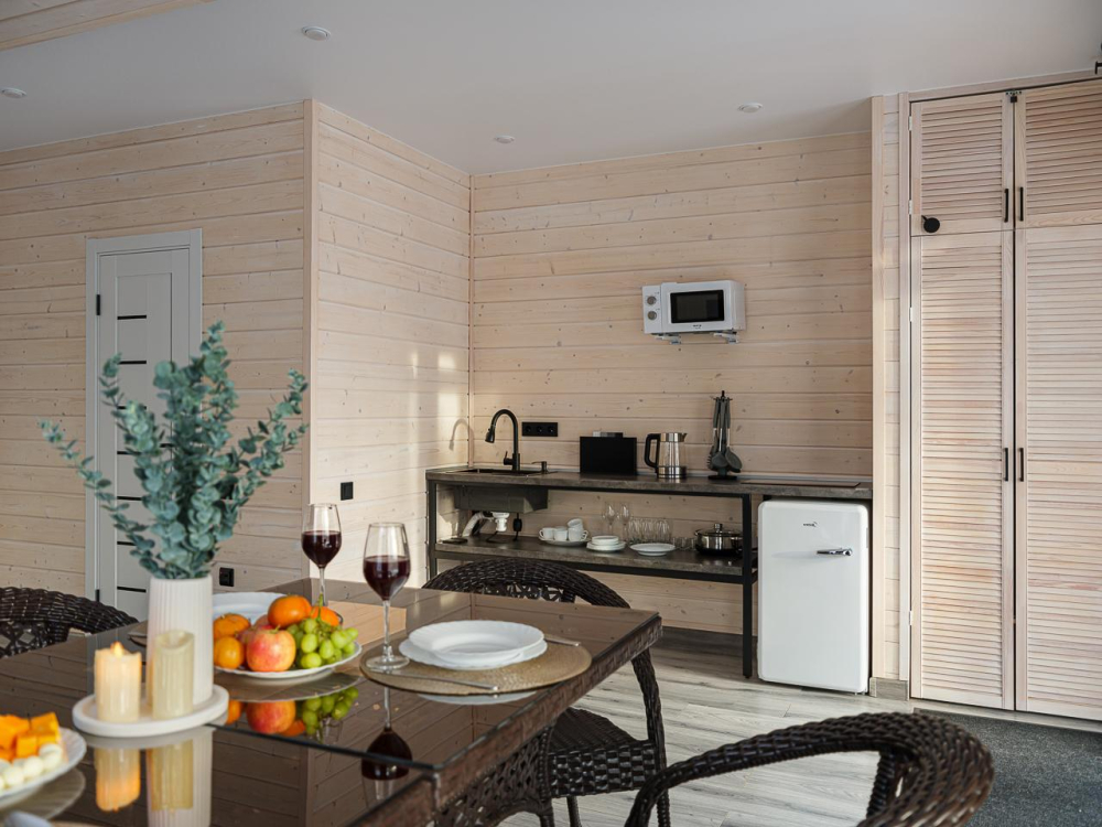 - Горячий чан: Уютная купель под открытым небом с хвойным экстрактом и травами (стоимость уточняйте при бронировании).