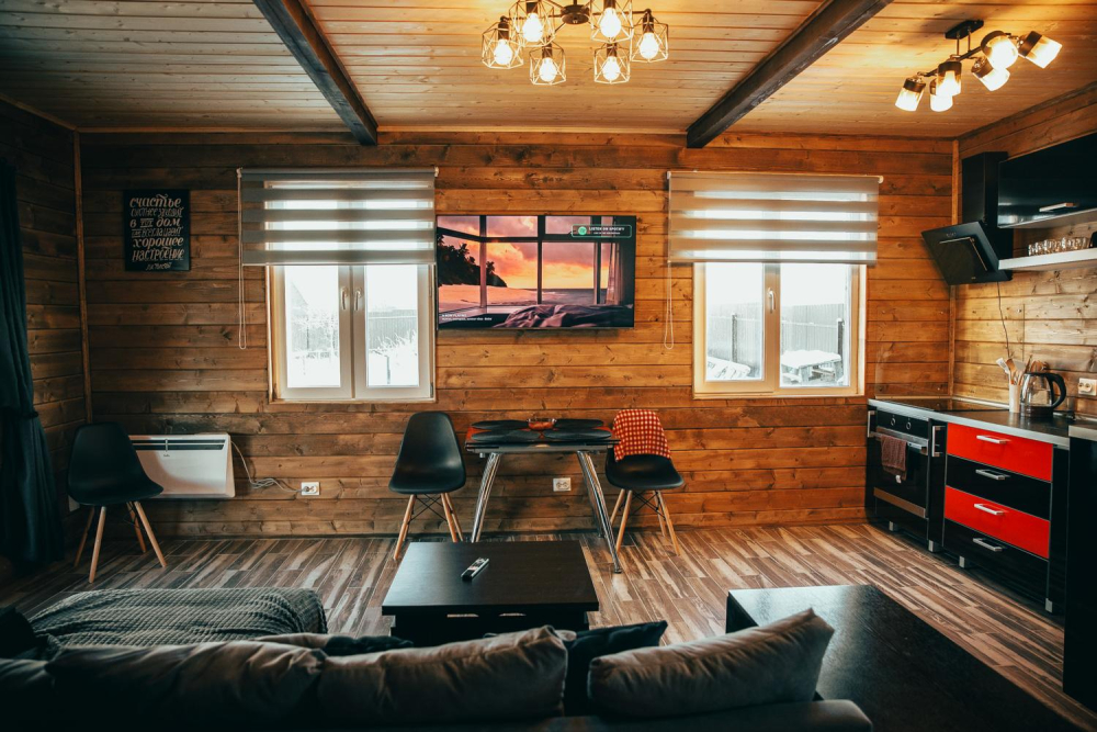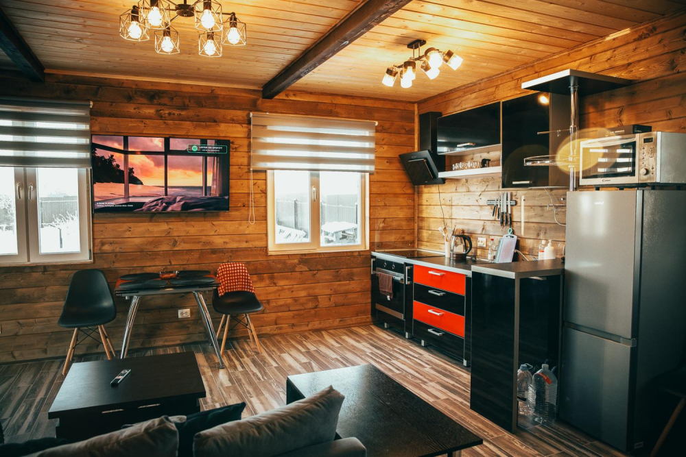 - Просторная кухня-гостиная с телевизором (Smart TV)