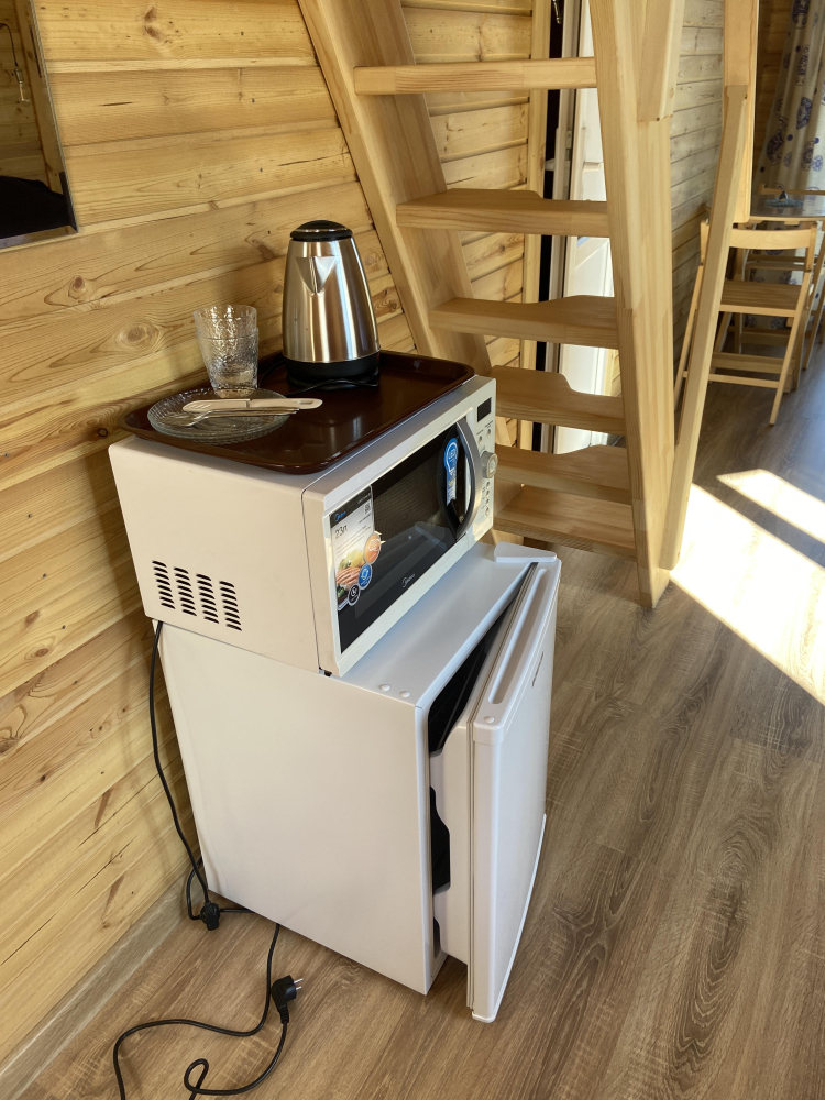 - Кухня-гостиная (в некоторых домах): микроволновка, чайник, мини-холодильник, посуда и бокалы для вина.