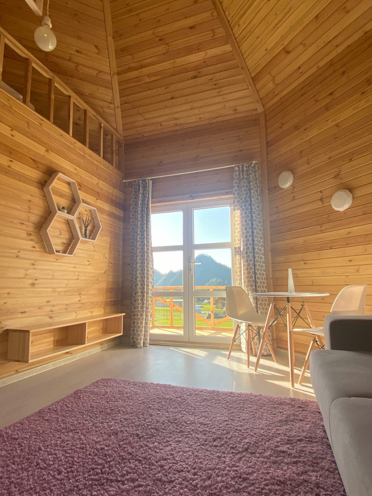 - Чистый горный воздух и потрясающие виды на горы, реку и зеленые луга.