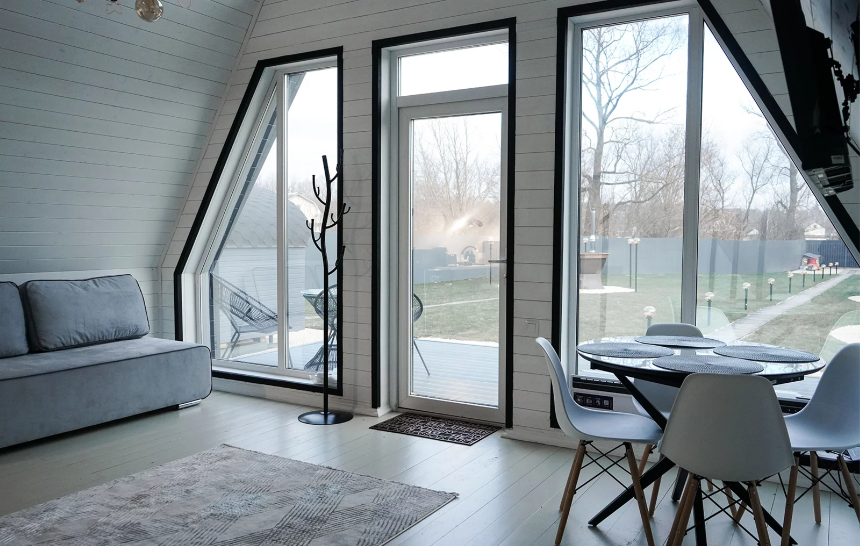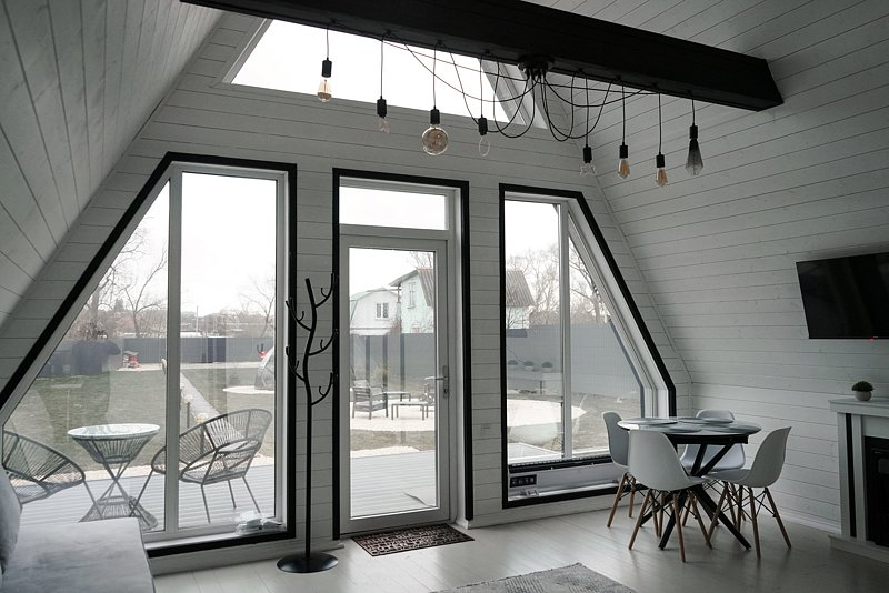 Домик площадью 56 м² рассчитано на комфортное размещение до 6 человек.