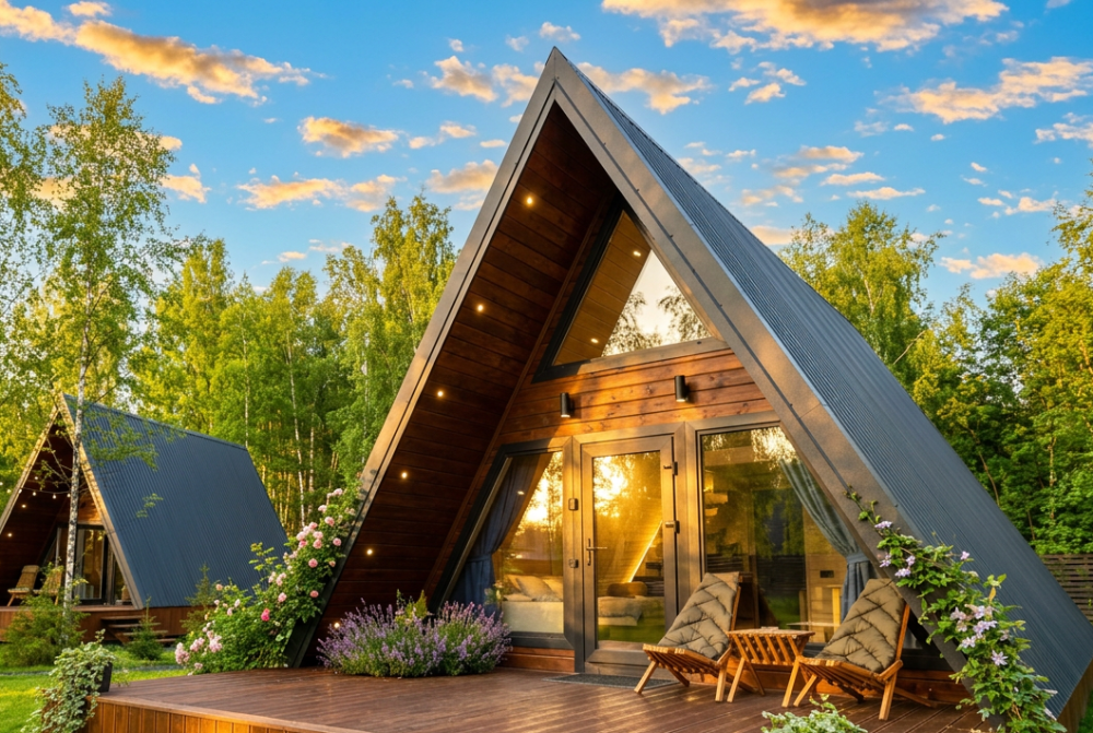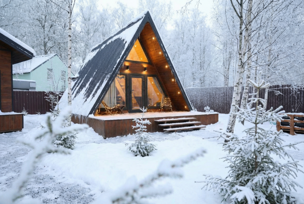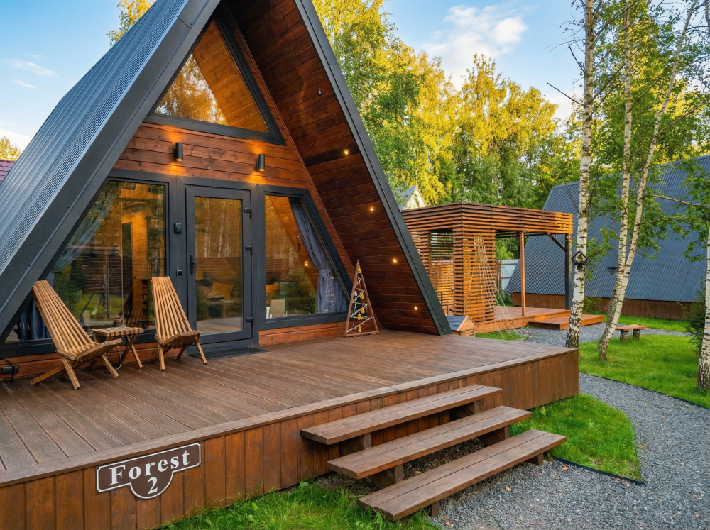 Стильные A-frame домики – удобные, уютные, оснащены всем необходимым.