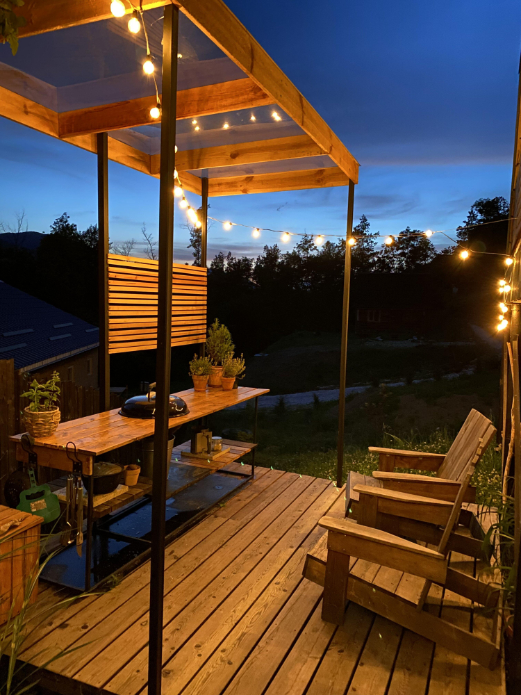 - Купель Фурако: Оплачивается дополнительно, 6000 руб. Топится купель гостями самостоятельно, все для этого мы оставляем. Рекомендации — вечерний сеанс для максимального расслабления.