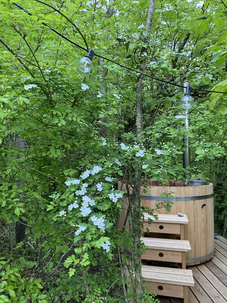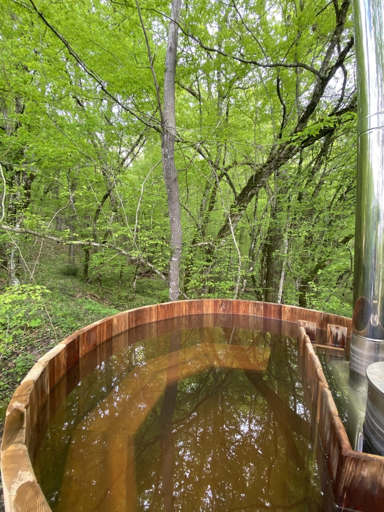 - Деревянная купель Фурако из ангарской лиственницы для релакса под звездами.