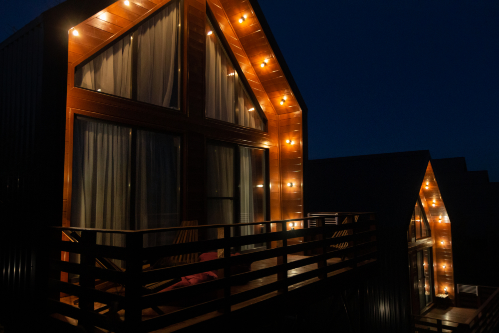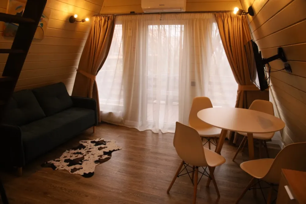 Гостей ждут стильные номера и двухэтажные домики, рассчитанные на комфортное размещение семей или небольших компаний.