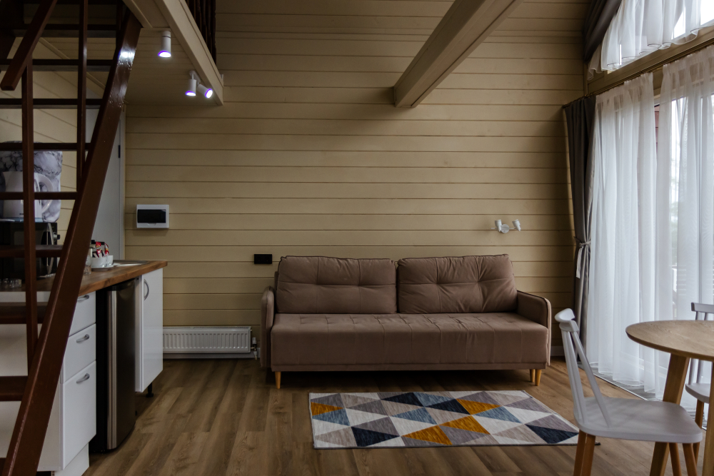 - Спальня: высокий удобный матрас, мягкий двуспальный диван, премиальный текстиль.