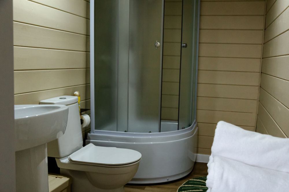 - Санузел: ванная комната с шампунем, гелем для душа и шапочкой.