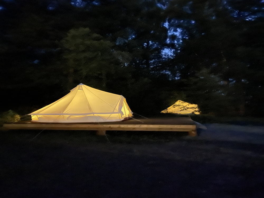 - Шатры в лесу: уютные и отапливаемые, идеальны для летнего отдыха.