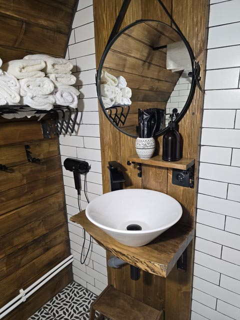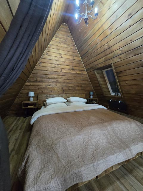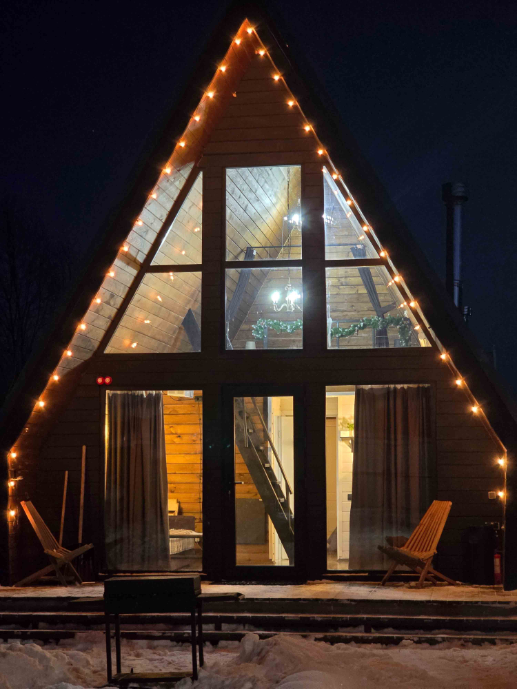 - A-Frame коттеджи: Две бани — закрытая русская (Aframe 1) и с панорамными окнами (Aframe 2).