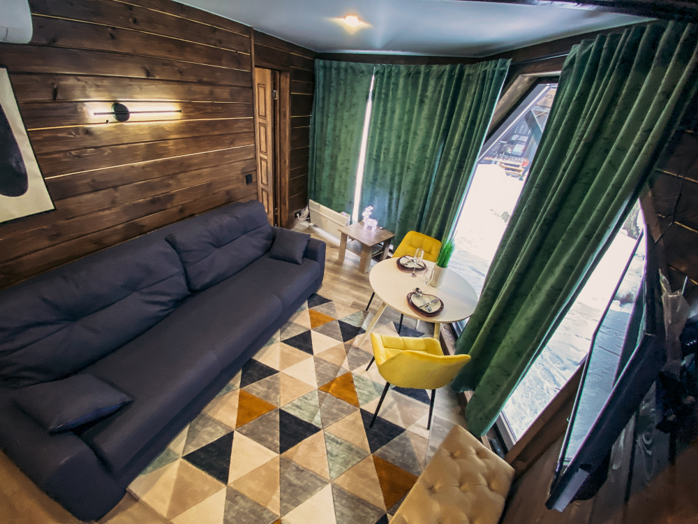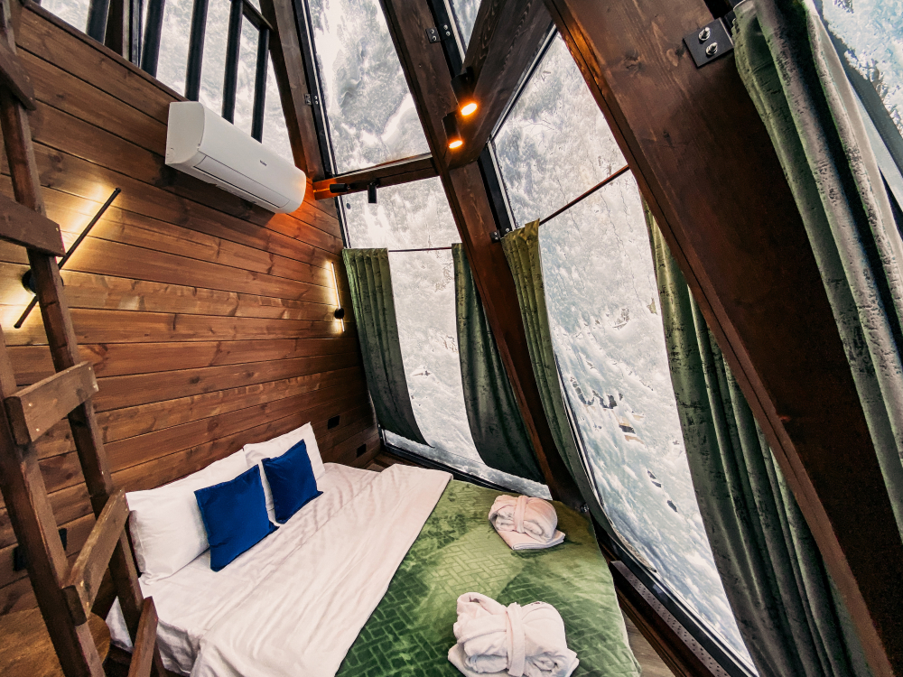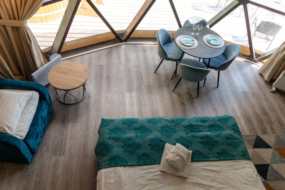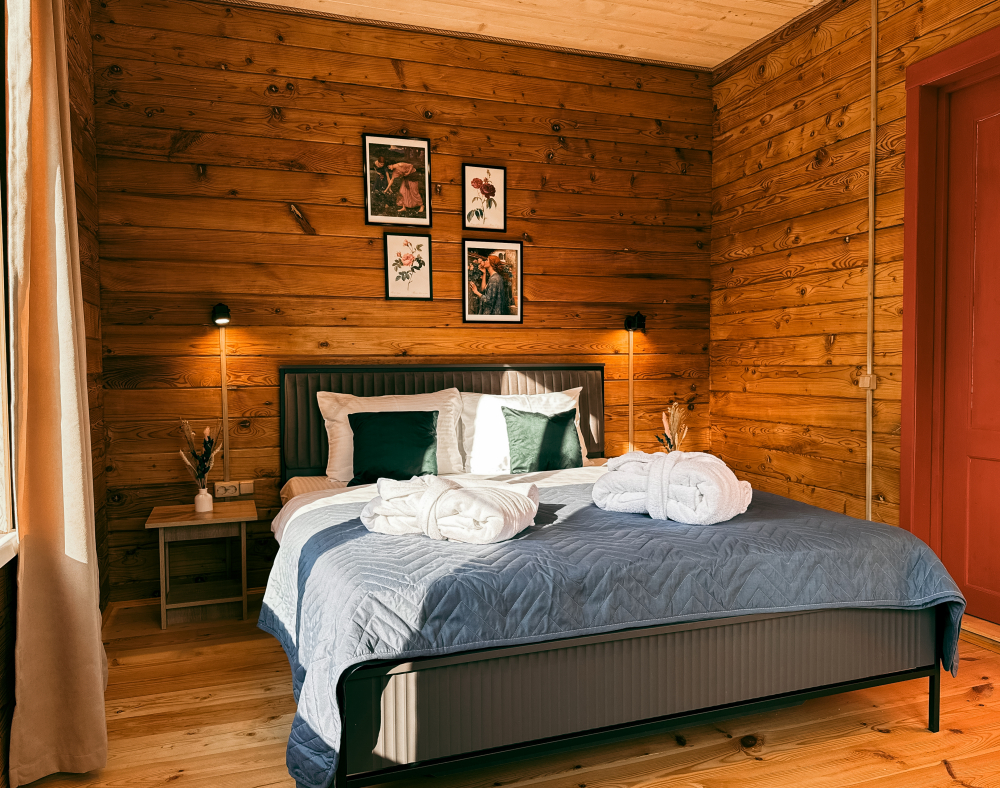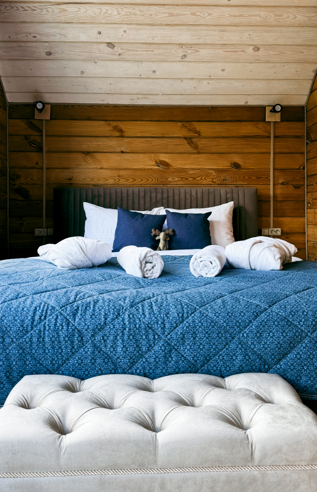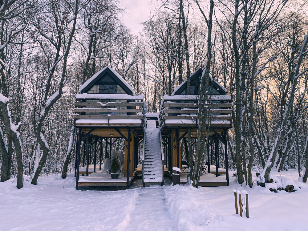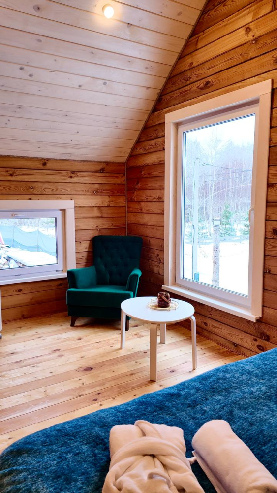 На территории курорта — более 20 уникальных домов: от уютных домиков на деревьях и футуристичных геокуполов до просторных барнхаусов, рассчитанных на компании до 8 человек. У каждого дома — собственная терраса, зона отдыха и горячая купель Фурако, а внутри — дизайнерский интерьер, кухня, текстиль и всё, что нужно для комфортного проживания с семьёй или в паре.