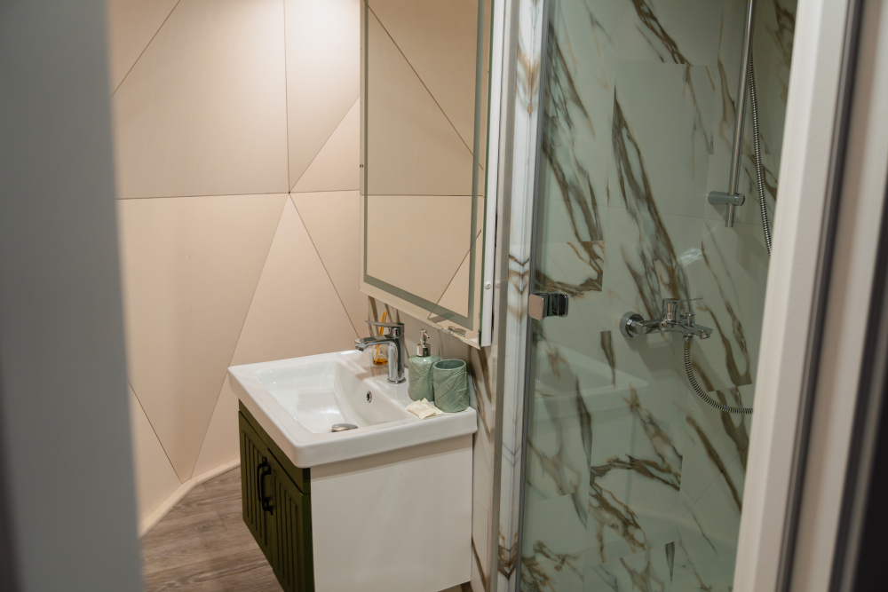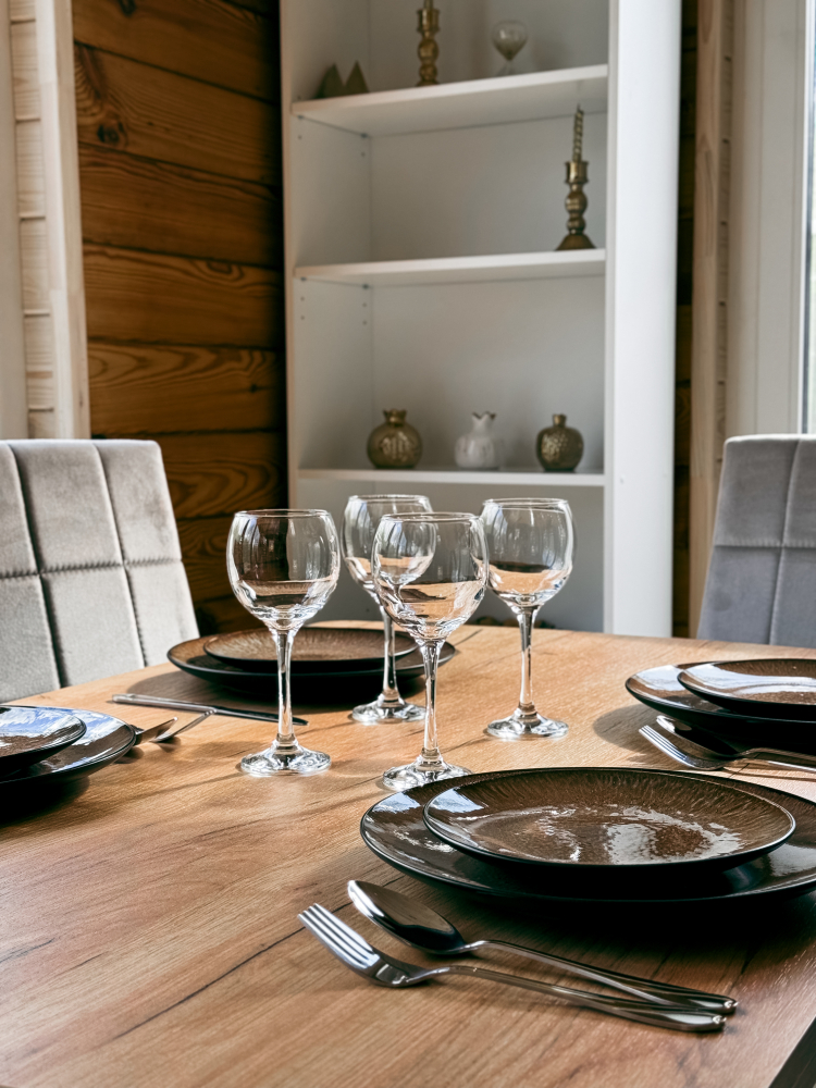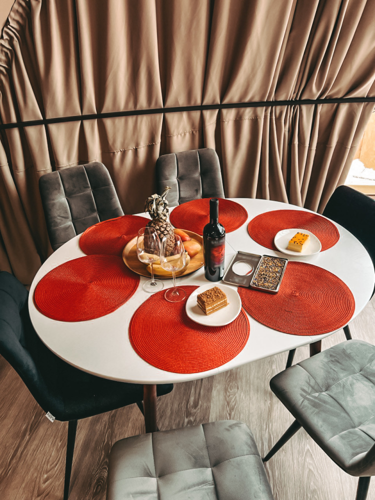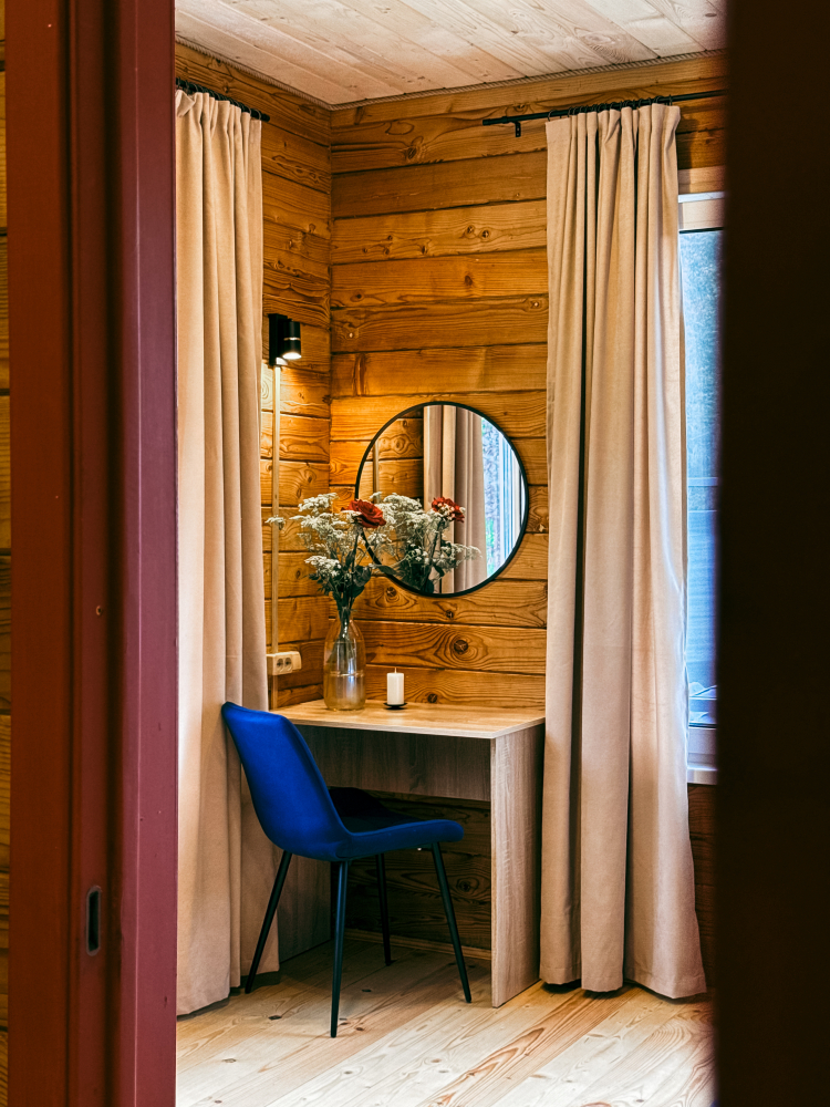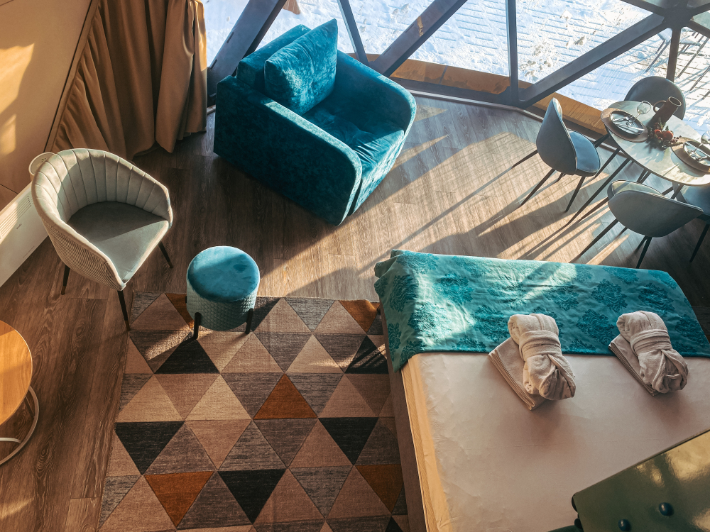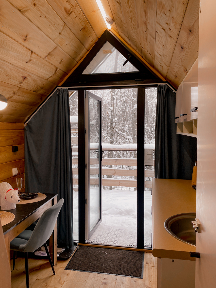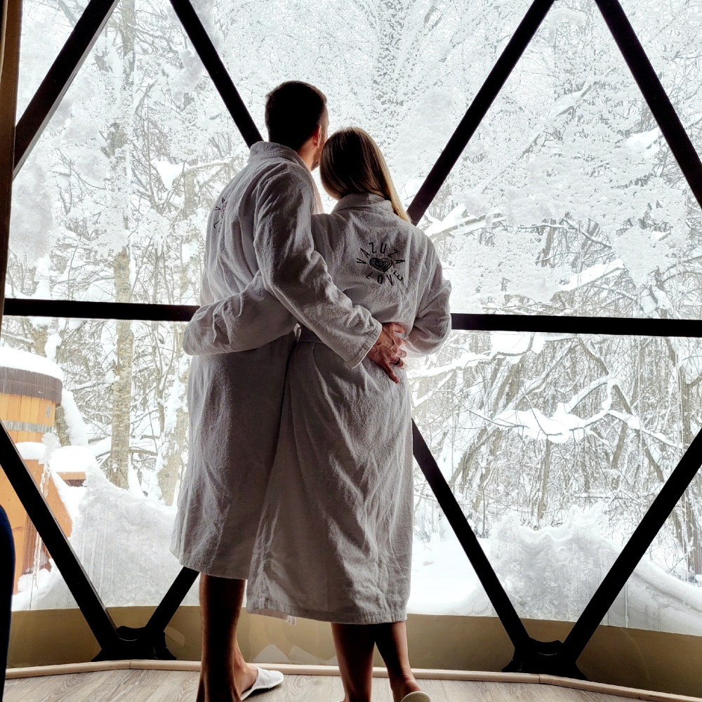 На территории курорта — более 20 уникальных домов: от уютных домиков на деревьях и футуристичных геокуполов до просторных барнхаусов, рассчитанных на компании до 8 человек. У каждого дома — собственная терраса, зона отдыха и горячая купель Фурако, а внутри — дизайнерский интерьер, кухня, текстиль и всё, что нужно для комфортного проживания с семьёй или в паре.