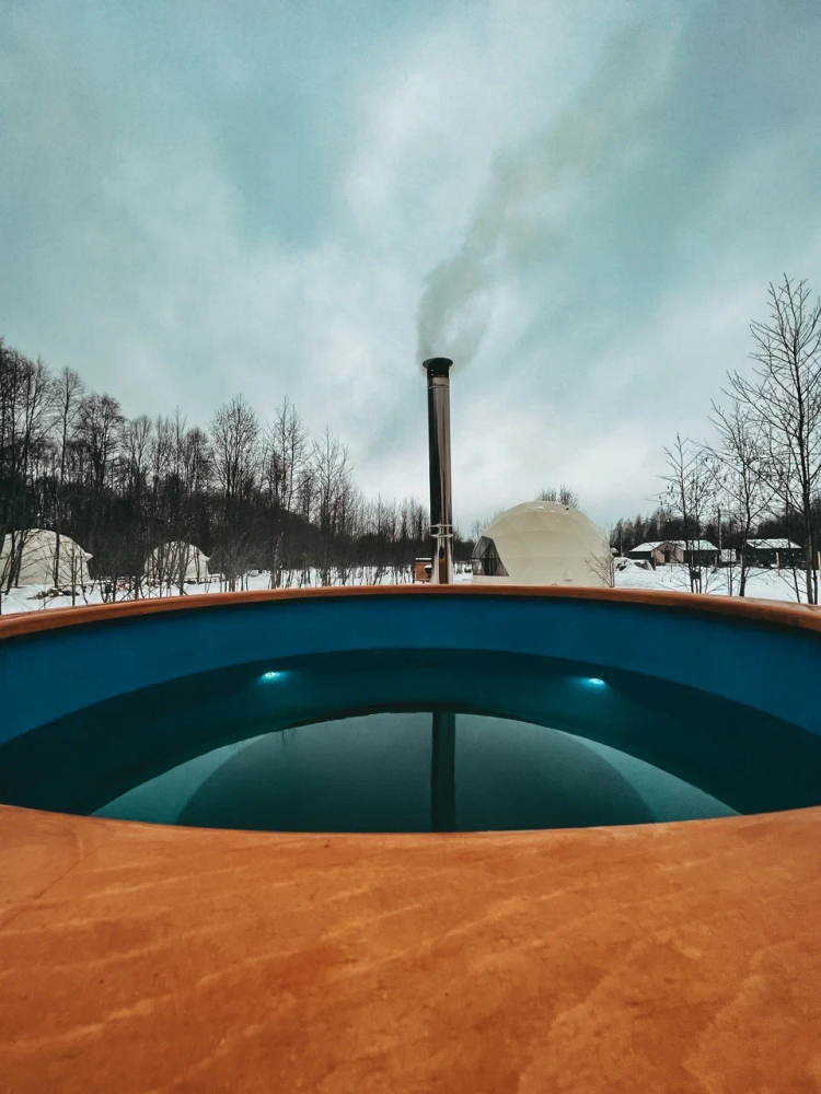 Горячий чан есть около домиков Дом на дереве "Цветы сакуры", Дом на дереве "Прогулка по Нью-Йорку" , Дом на дереве "Лондонский туман", Геокупол люкс "Северное сияние" , Геокупол люкс "Стоунхендж" , Геокупол люкс "Просто космос" , Геокупол люкс "Свидание на крыше", Геокупол премиум "Мечты о Париже" , Дом на дереве "Дуэт", Королевский типи "Звёздное небо" , Королевский типи "Принцесса Навахо", Геокупол сьют "Индия", Геокупол сьют "Пряный Марракеш" , Геокупол сьют "Лагуна Колорадо" , Геокупол сьют "Жаркая Мексика" , Геокупол сьют "Лазурный берег", Большой Барнхаус "Гэтсби".