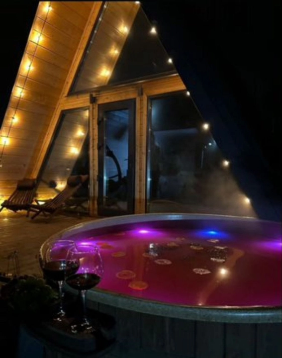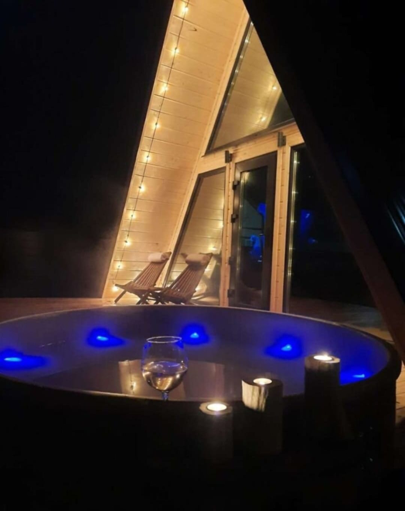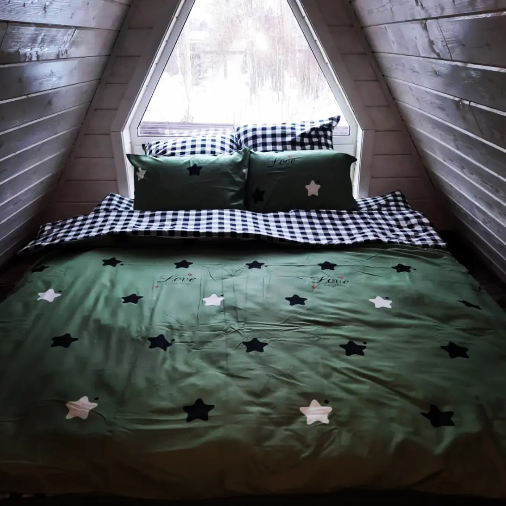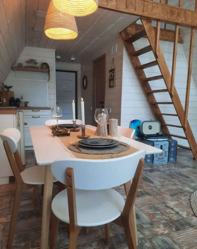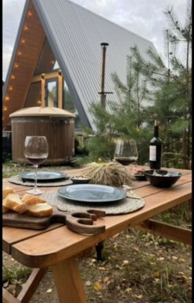 A-frame дом расположен в уединённом и атмосферном месте, прямо на краю большого соснового бора. Здесь можно: