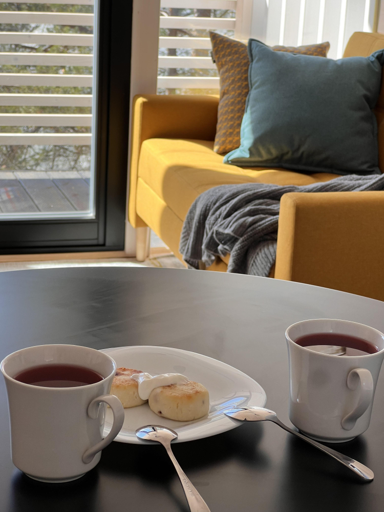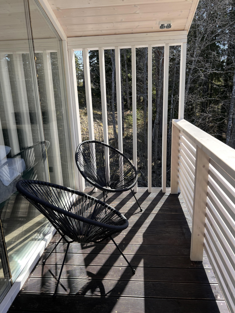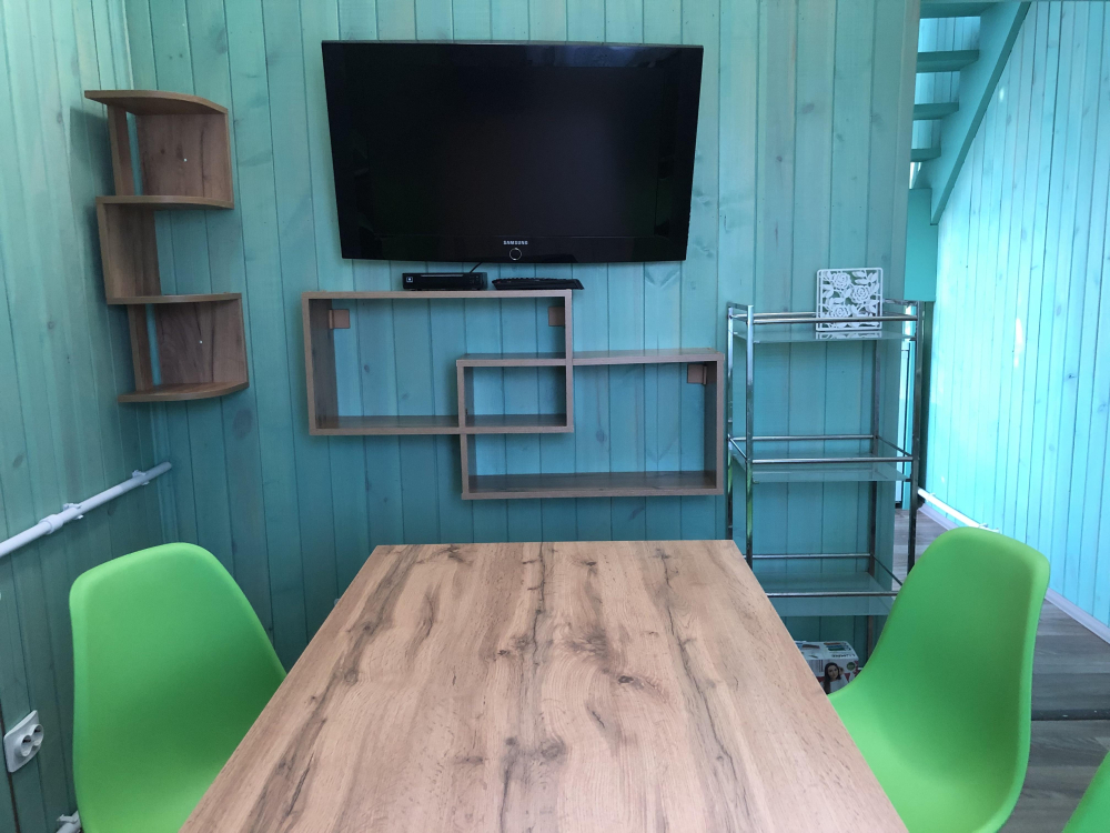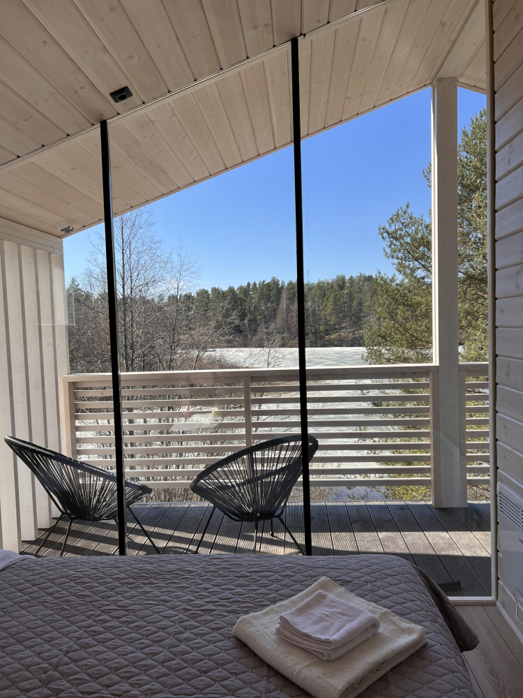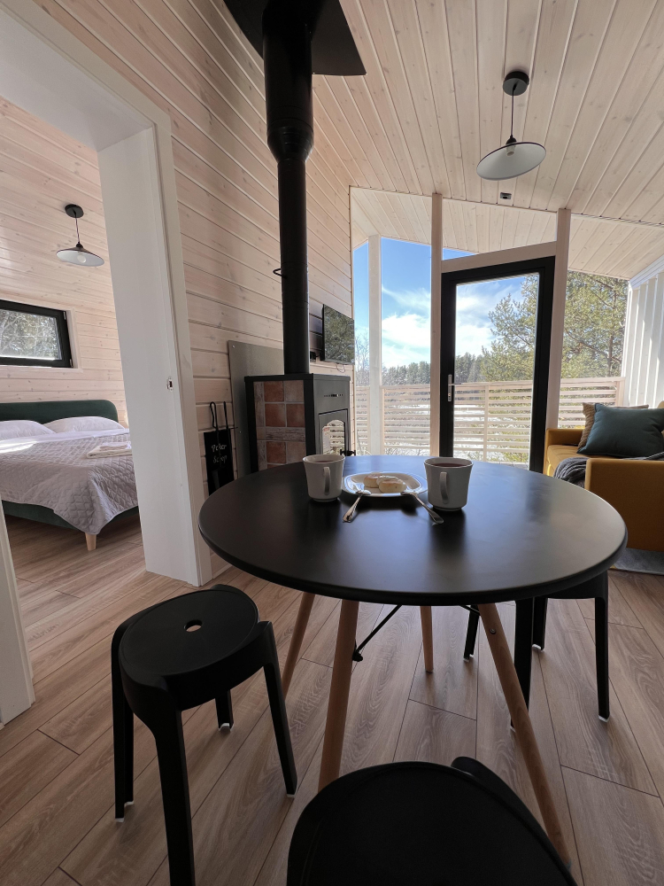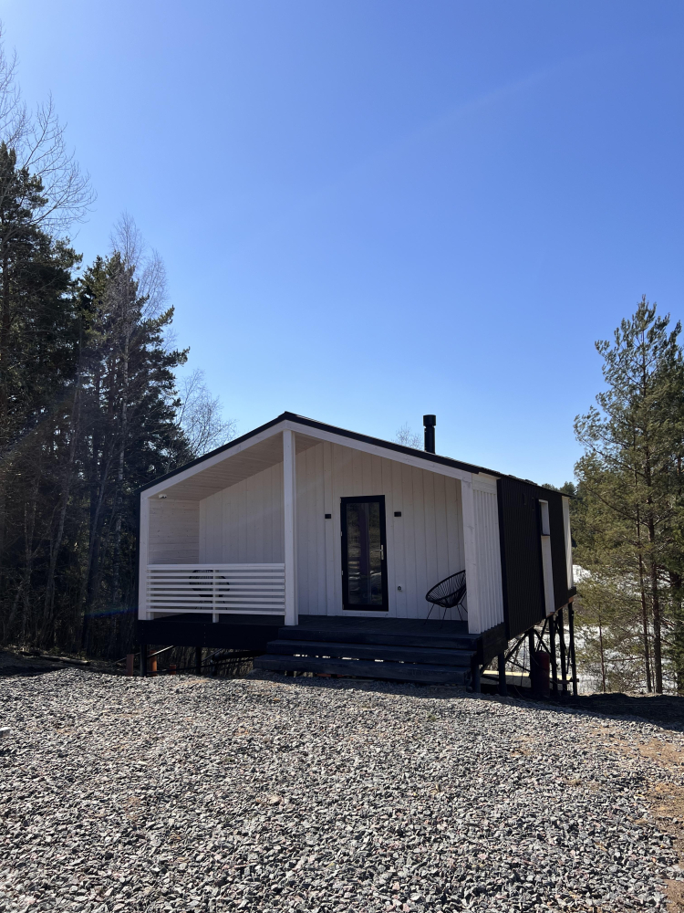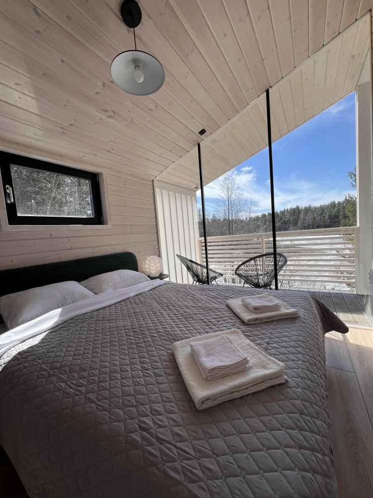 - Каждый дом оборудован для комфортного проживания: камин, веранда, большие окна с видом на озеро.