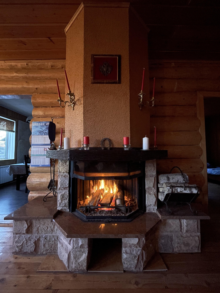- Теплое и уютное жилье с камином, верандой и панорамными окнами.