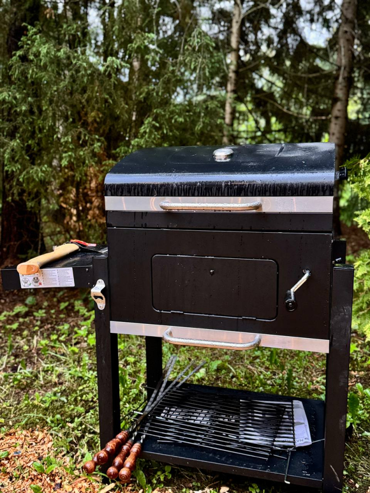 Мангал с решетками и шампурами. Уголь, розжиг и дрова можно приобрести у нас.