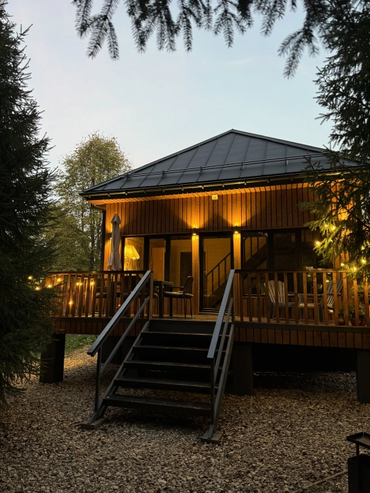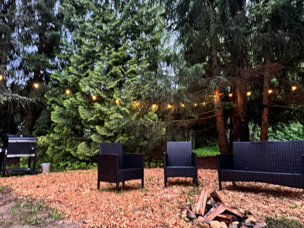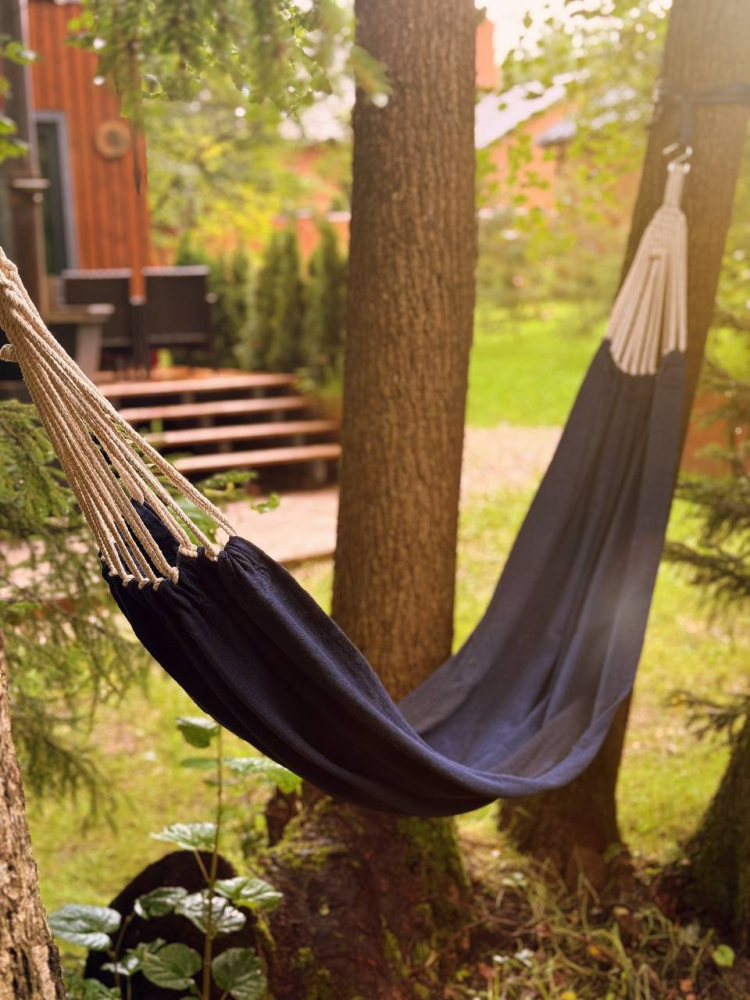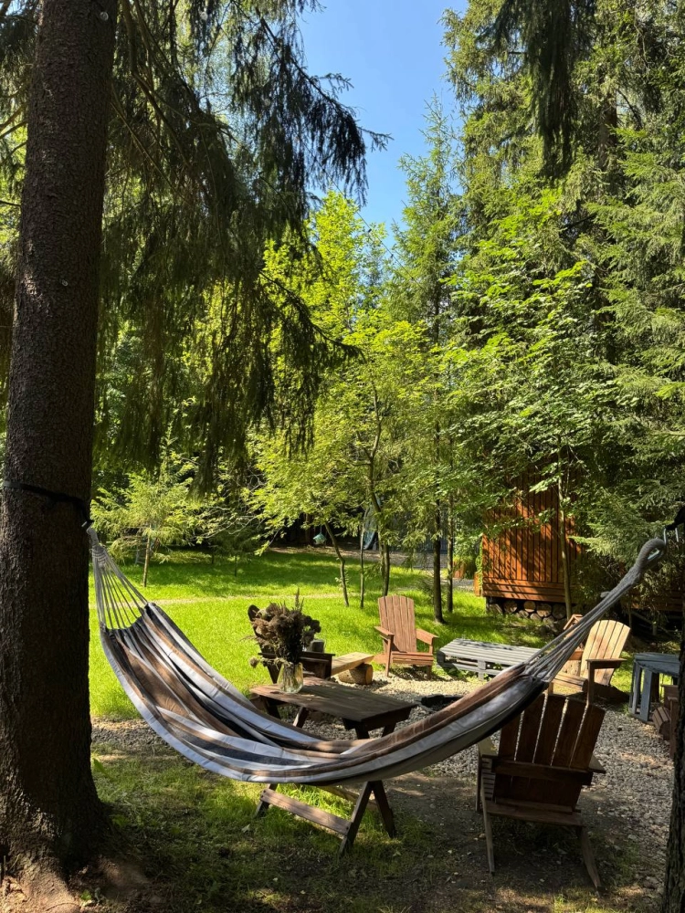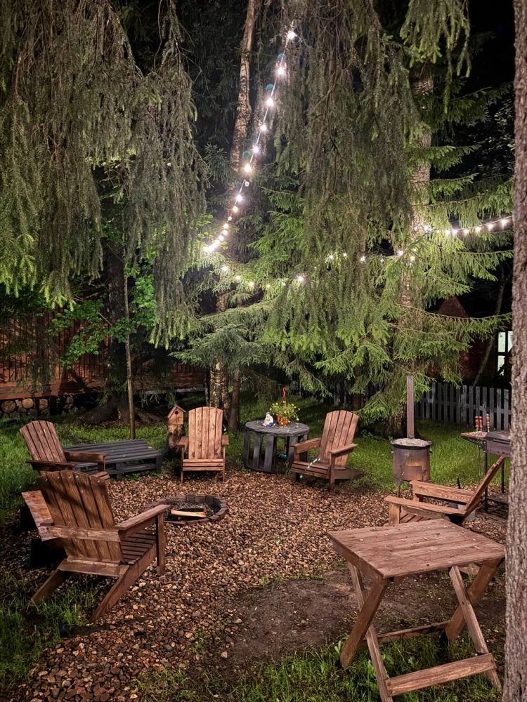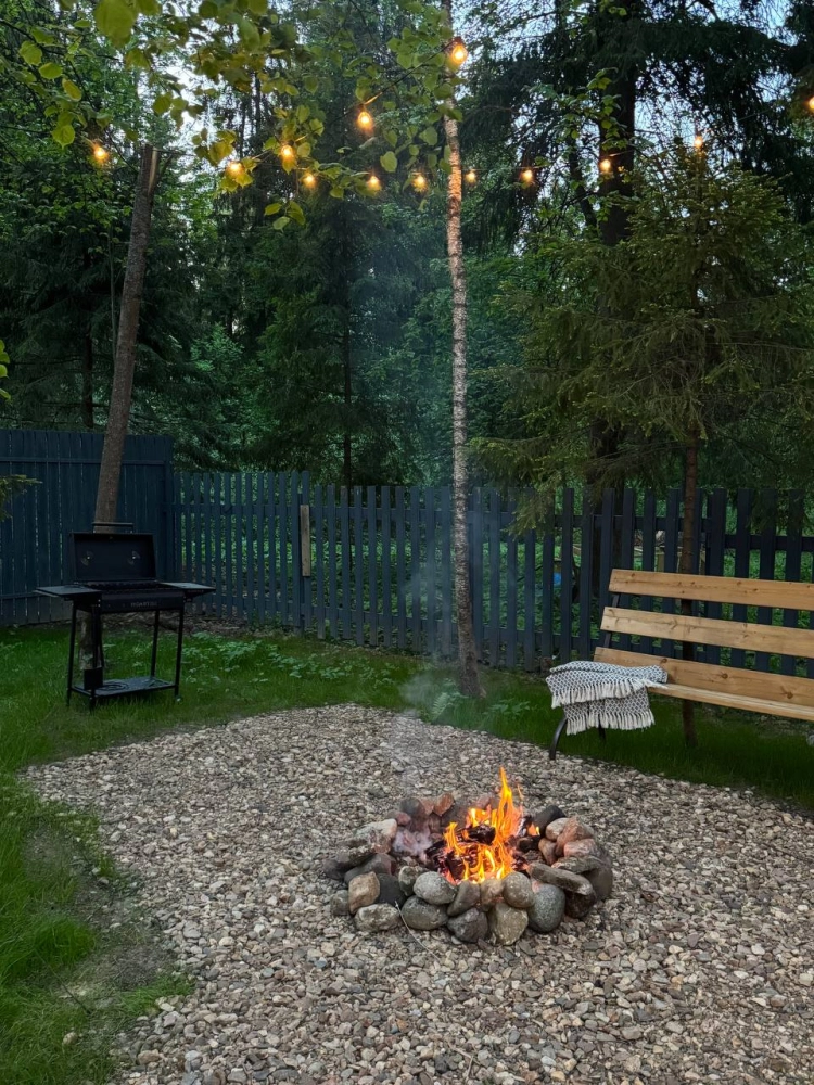 - Индивидуальные места отдыха с гамаками, костровой чашей и мангалом. По вечерам можно включить гирлянды - это создает особую атмосферу уюта и романтики