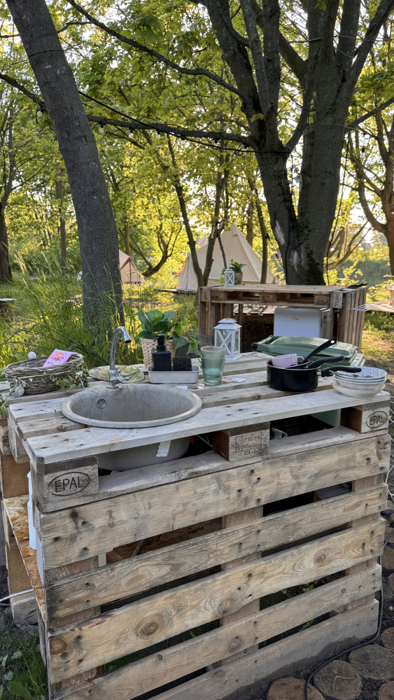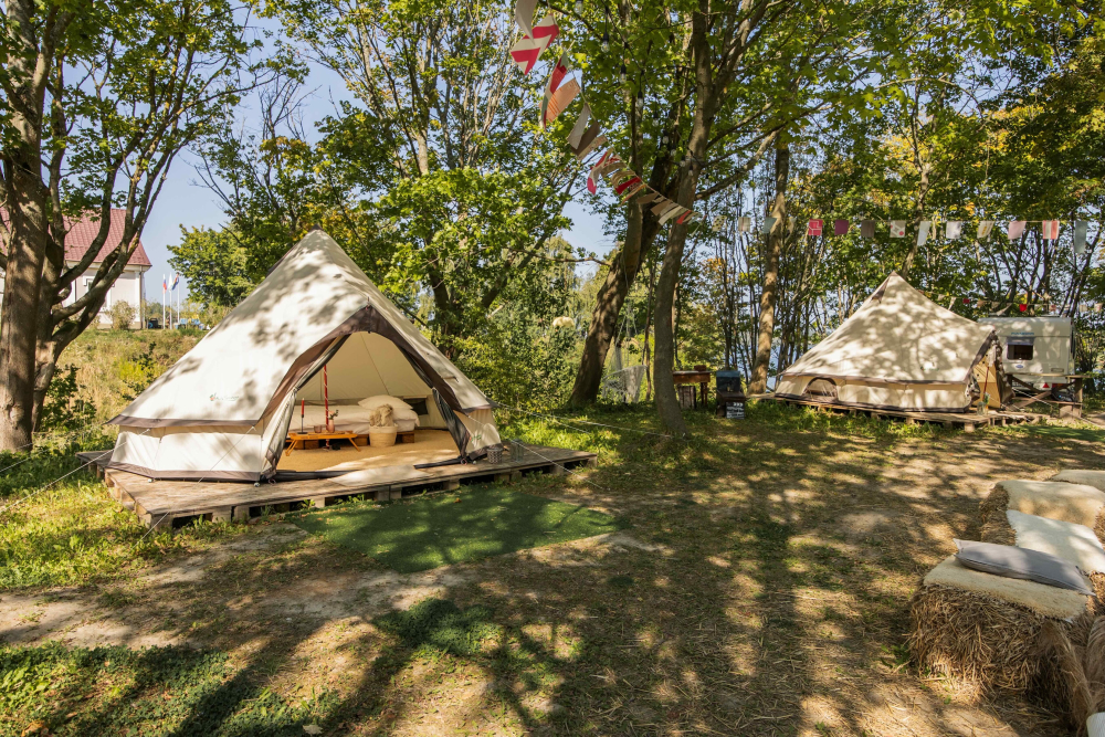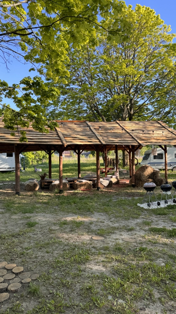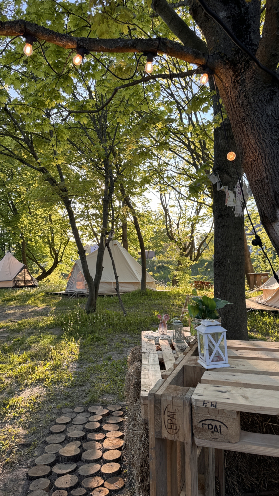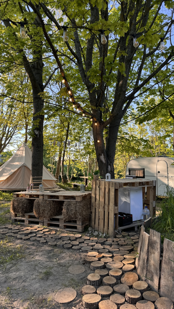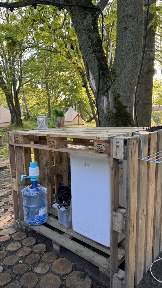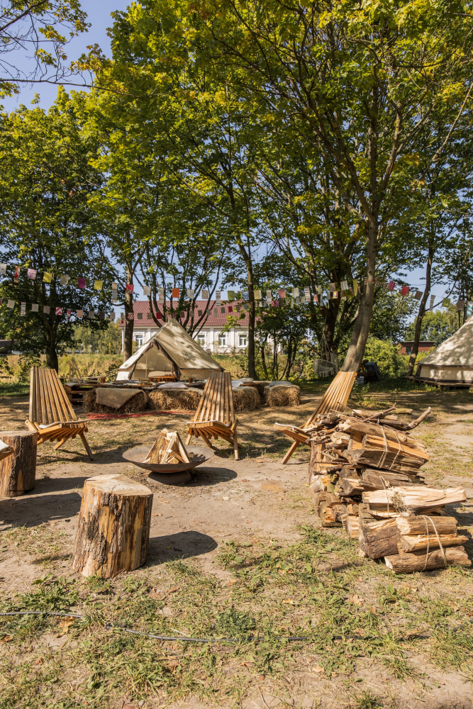 Автодома, шатры для проживания, зона барбекю, костёр, уличная кухня, а также чилл-зона.