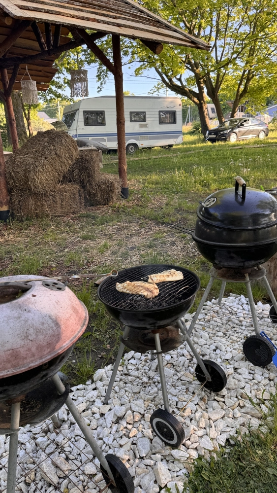 Три мангала закрытого с решетками, есть шампуры. Для розжига используем газовые горелки. Уголь гости приносят свой, либо можно приобрести у нас (300 руб/мешок)