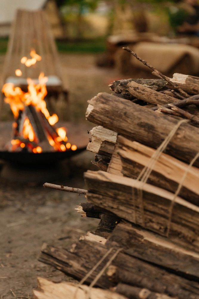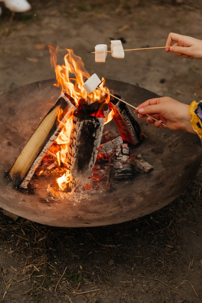 Костровая зона общая, находится в центре кемпинга. Дрова бесплатные - 2 вязанки на вечер. Дополнительные дрова - 200 руб/вязанка. Упаковка Маршмелло со шпажками с шоколадной серединой для жарки на костре - 300 руб