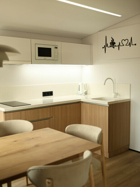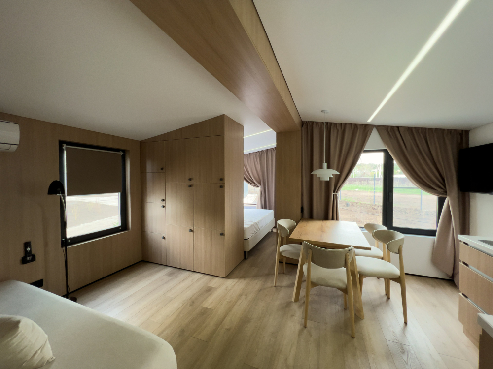 Пространство для тех, кто хочет уединиться с природой, не жертвуя комфортом. Здесь объединены комфорт и отдых на природе — без ресепшенов, горничных и навязчивого сервиса. Всё необходимое уже внутри уютного дома среди сосен.