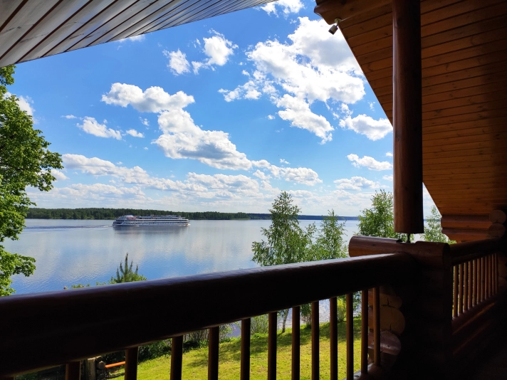 Вид из окон первого этажа открывается прямо на реку Волга.