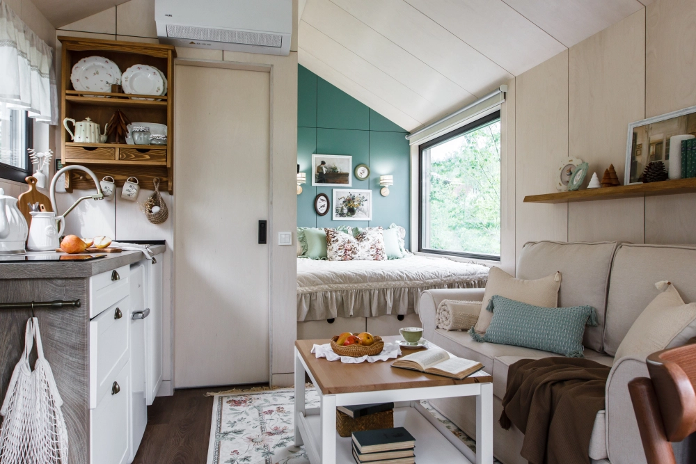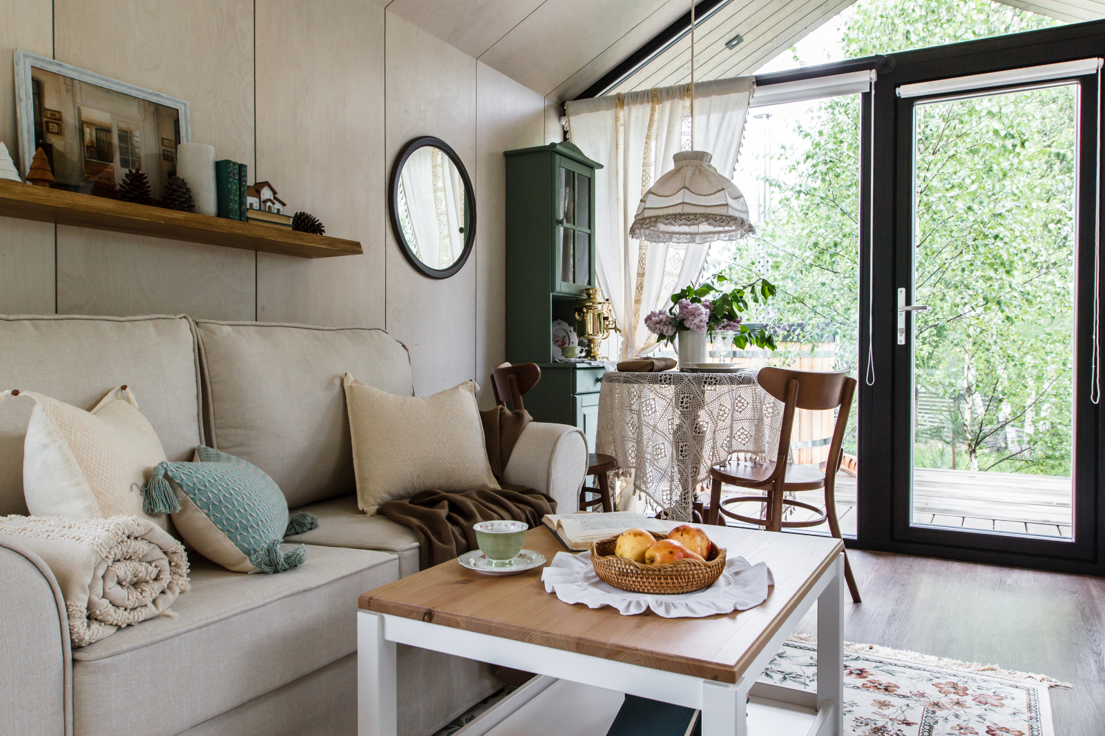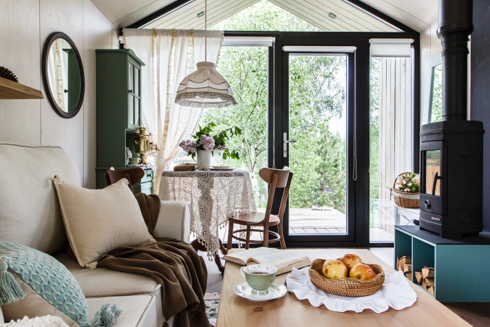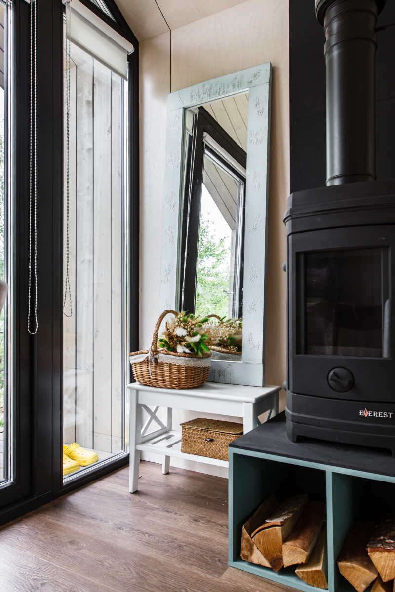 В доме можно посмотреть любимый фильм через проектор или послушать музыку на виниле под треск дровяного камина.