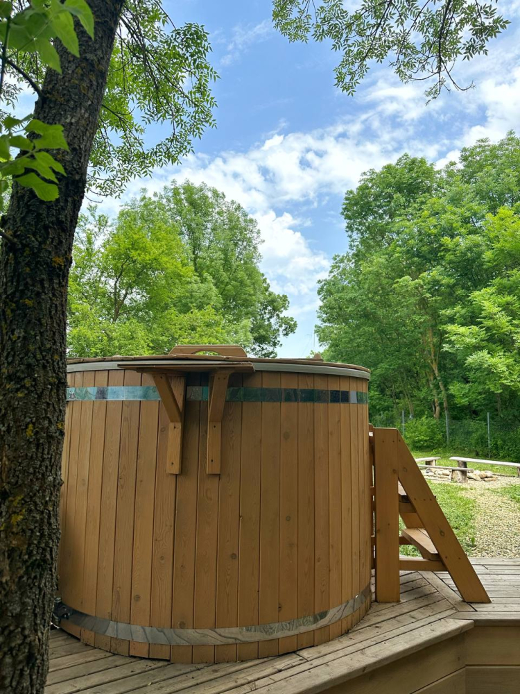 Индивидуальное фурако возле домика на террасе.