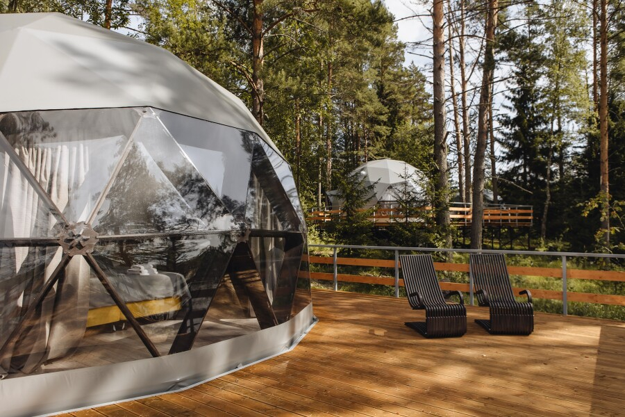 - 5 геокуполов с полным набором удобств — стильных, уютных и экологичных вариантов размещения.