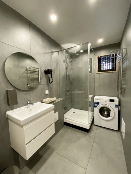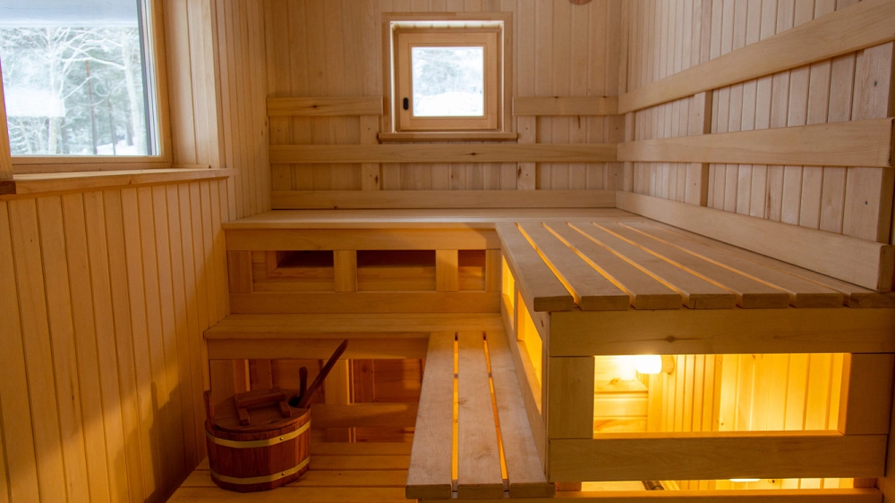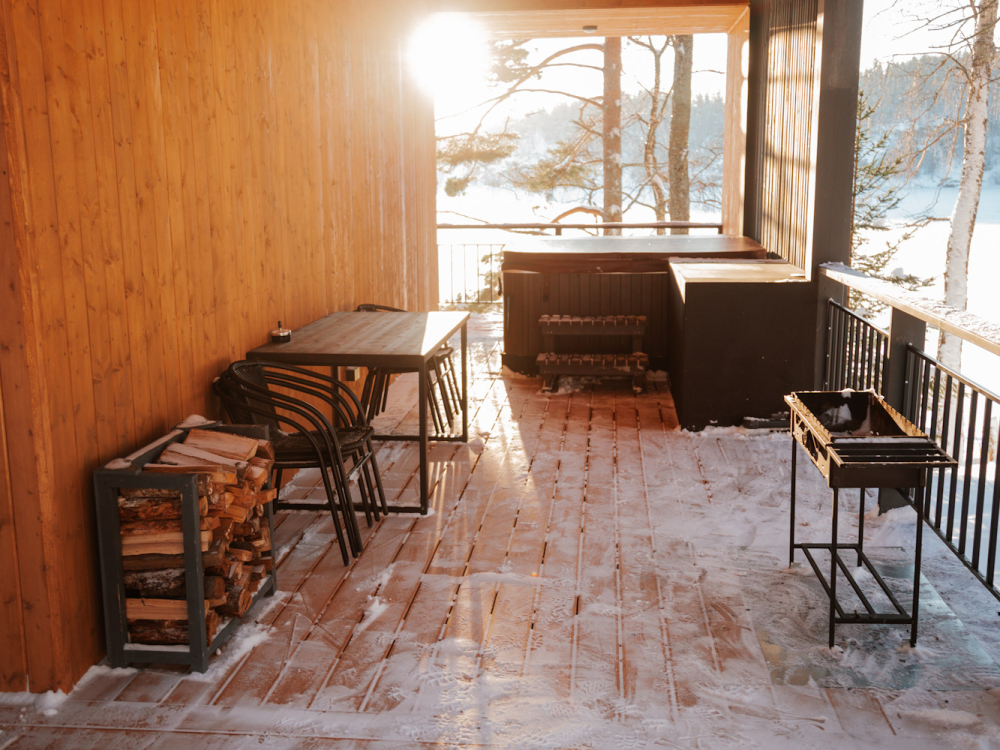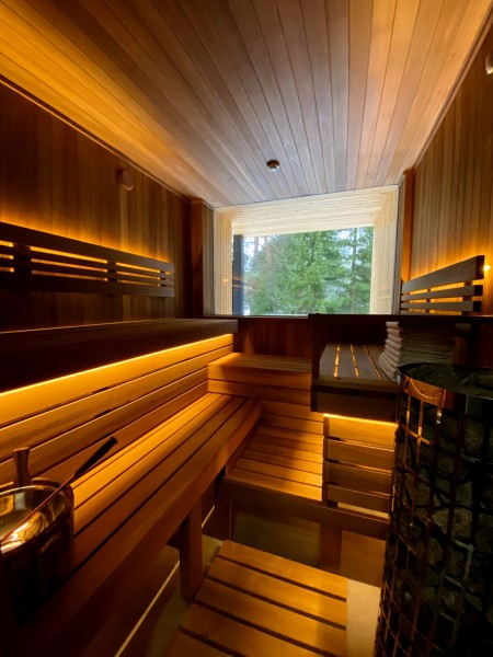 Баня выполнена из натуральных материалов, что создает атмосферу уюта и тепла. Внутри есть все необходимое для комфортного пребывания: просторная комната отдыха, душевая, парная и уличный джакузи. Банный комплекс находится на небольшом расстоянии от берега озера, что позволяет после парения окунуться в прохладные воды Ладоги. В бане есть необходимая посуда, чай, сахар, электрический чайник, косметика, банные халаты, полотенца, банные простыни, одноразовые тапочки.