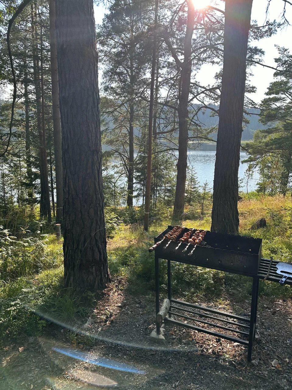У каждого дома есть собственная мангальная зона . шампуры предоставляются, решетка за доп.плату.