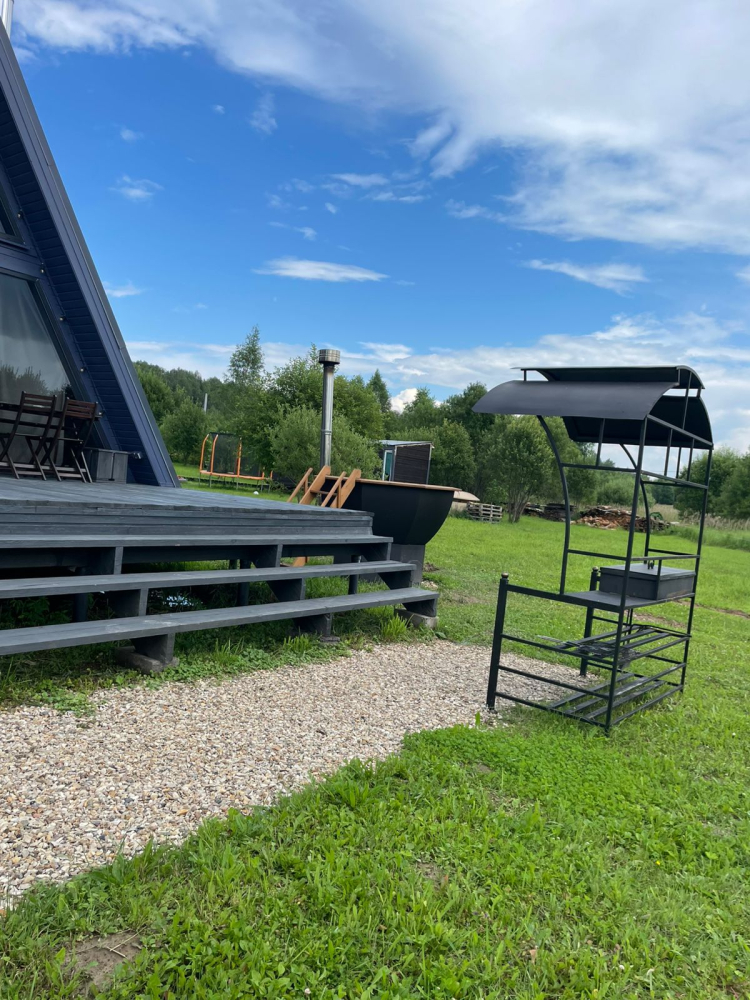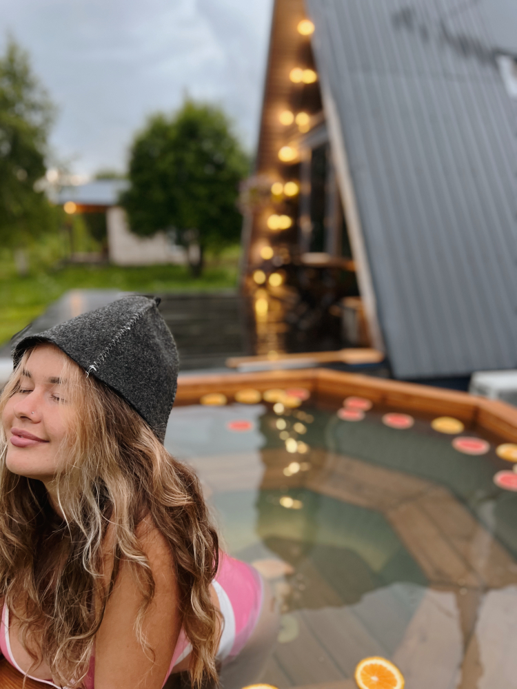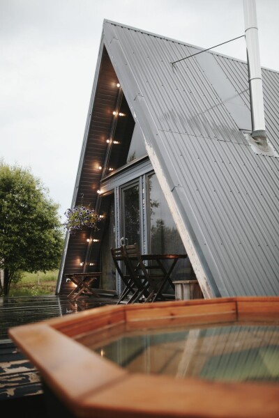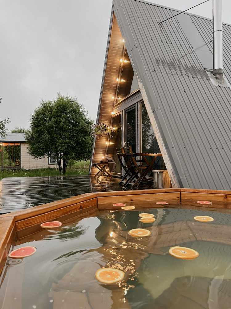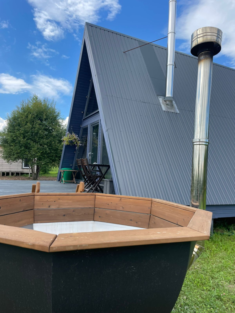 У всех домиков есть подогреваемая купель рядом с домиком: