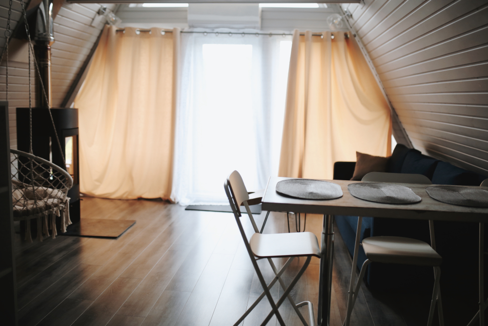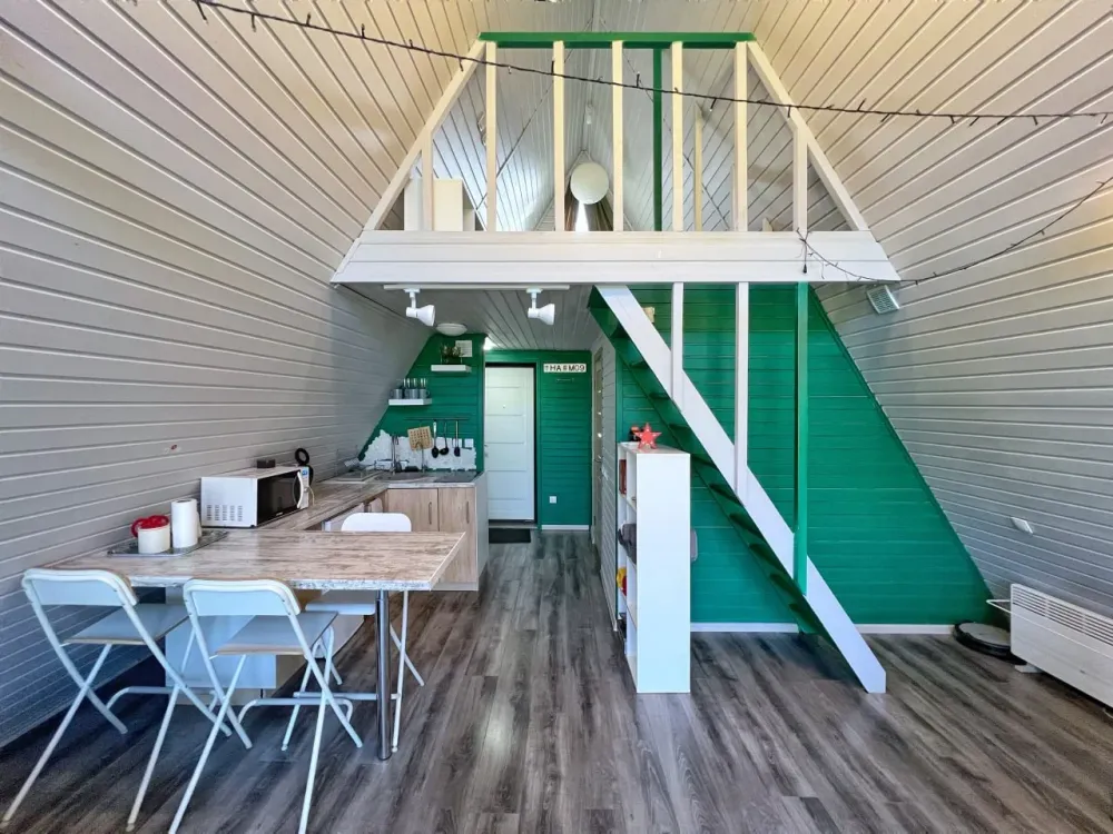 — Максимум 4 спальных места: матрас на втором уровне и раскладной диван на первом