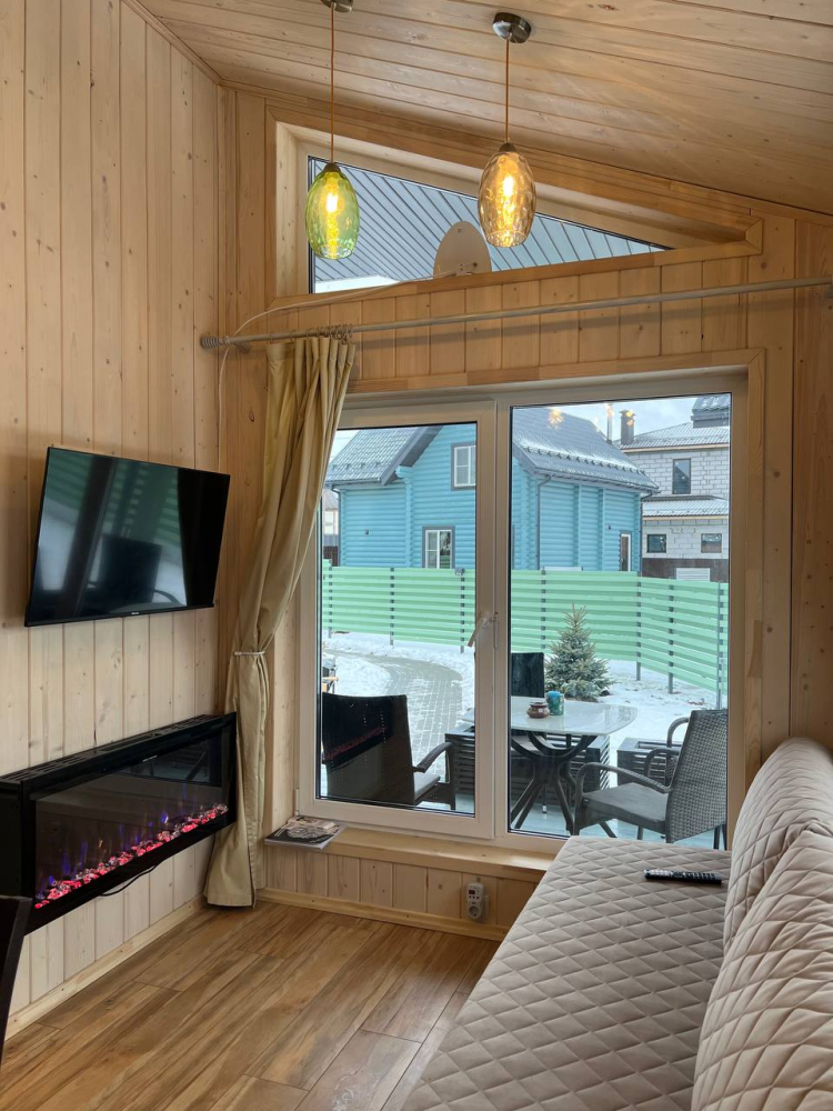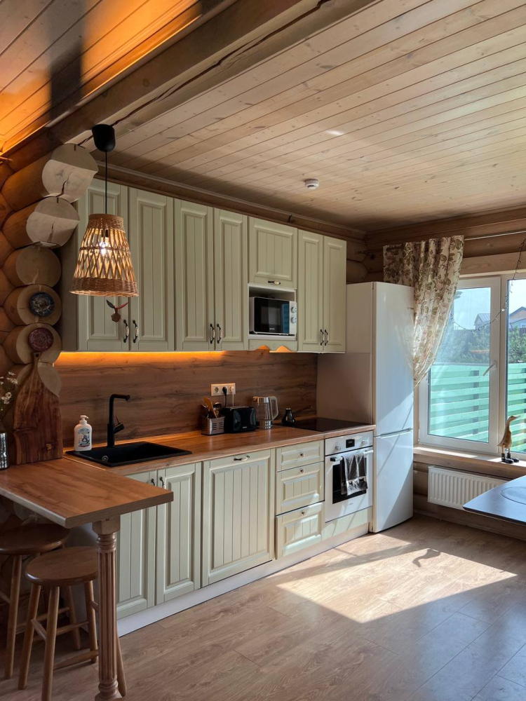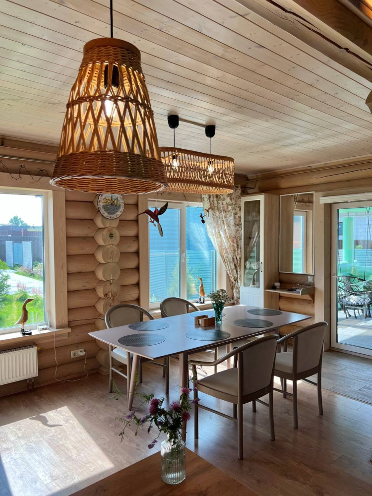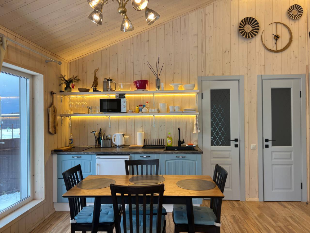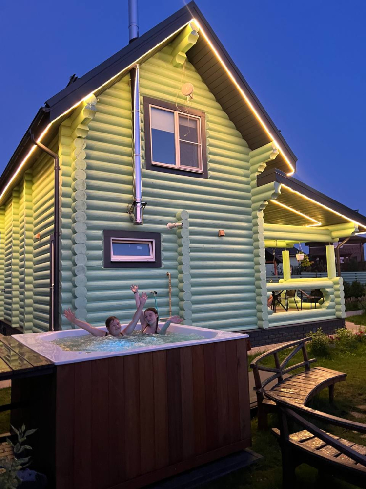 Горячий чан есть около домиков Дом из бревна “Зелёный” с сауной и купелью, Дом из бревна “Синий” с сауной и купелью, Экодом “Олива” с и купелью и сауной.