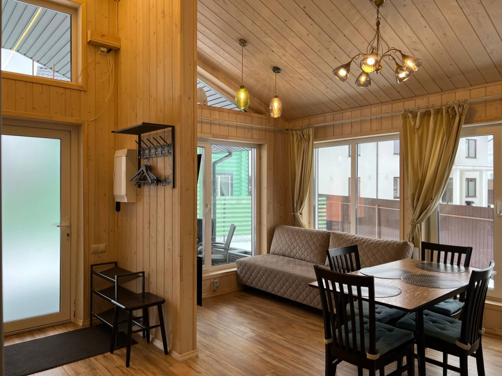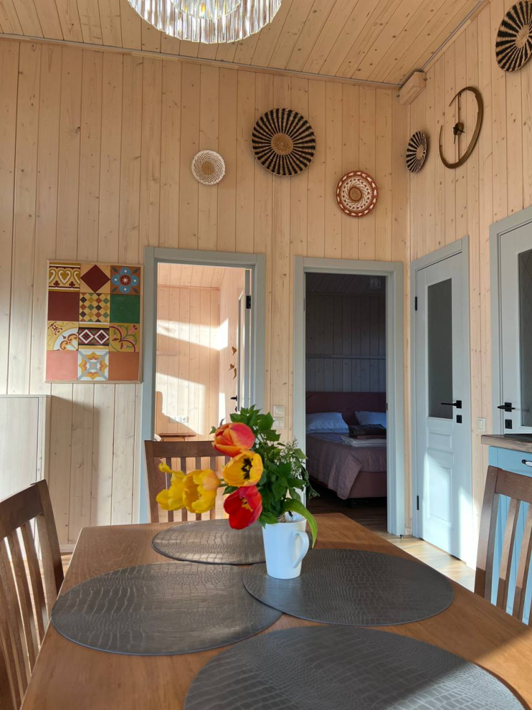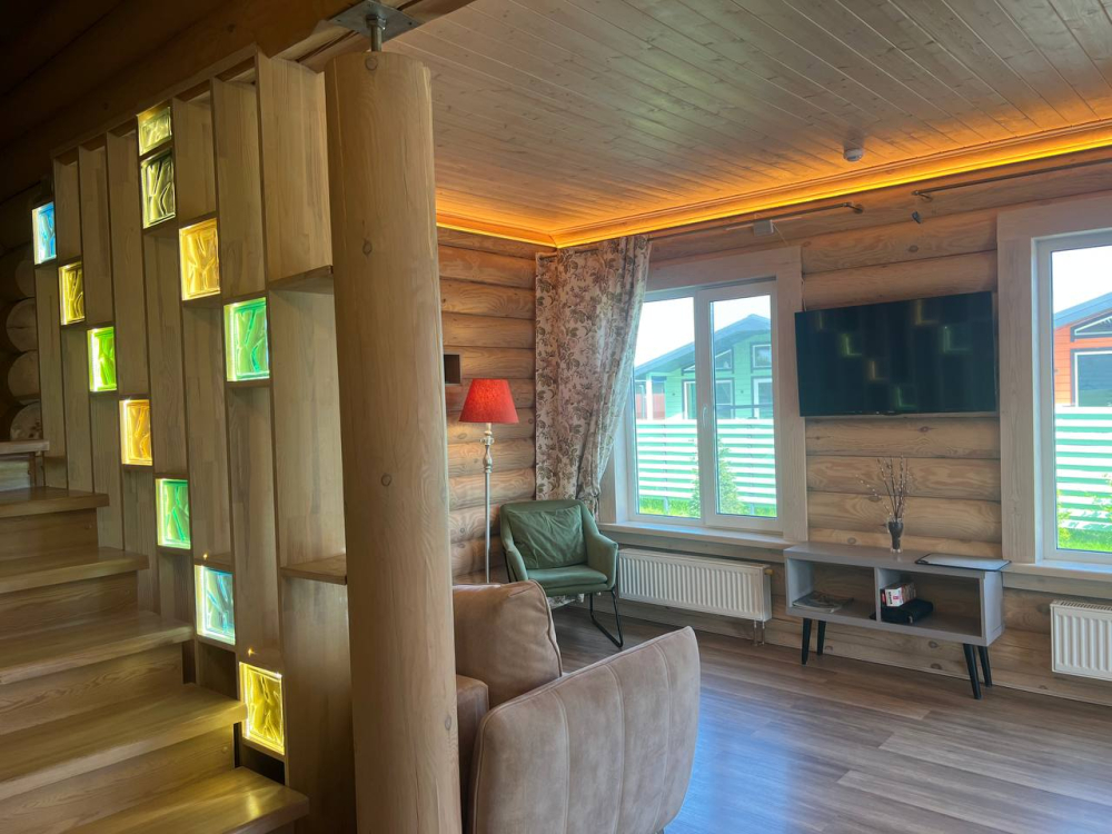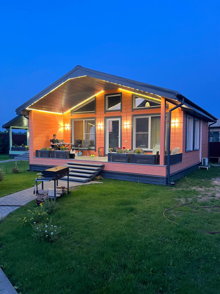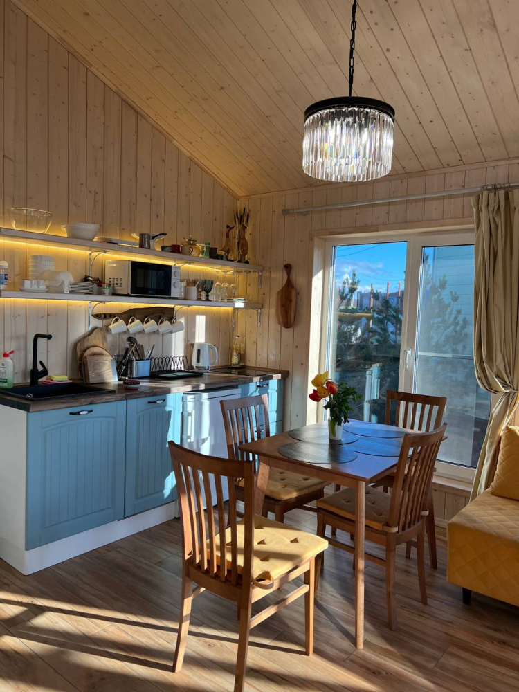 Горячий чан есть около домиков Дом из бревна “Зелёный” с сауной и купелью, Дом из бревна “Синий” с сауной и купелью, Экодом “Олива” с и купелью и сауной.