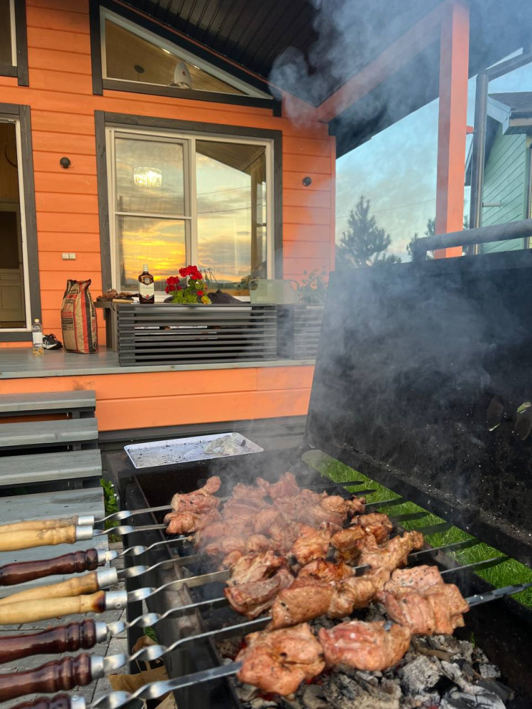 Костровая зона есть около домиков Дом из бревна “Зелёный” с сауной и купелью, Дом из бревна “Синий” с сауной и купелью.