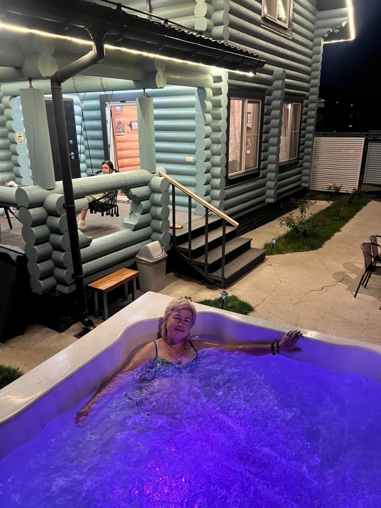 Джакузи есть около домиков Дом из бревна “Зелёный” с сауной и купелью, Дом из бревна “Синий” с сауной и купелью, Экодом “Олива” с и купелью и сауной.