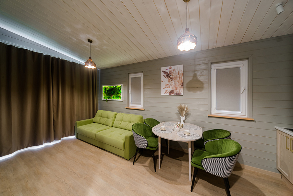 -Индивидуальность и комфорт каждого гостя -каждый дом выполнен в уникальной стилистике и рассчитан на прием от 2 до 6 гостей. Мы заботимся о вашем комфорте, предлагая современную мебель и технику высочайшего уровня.
